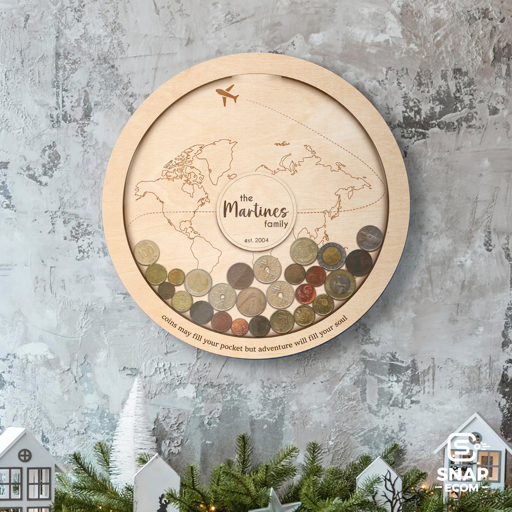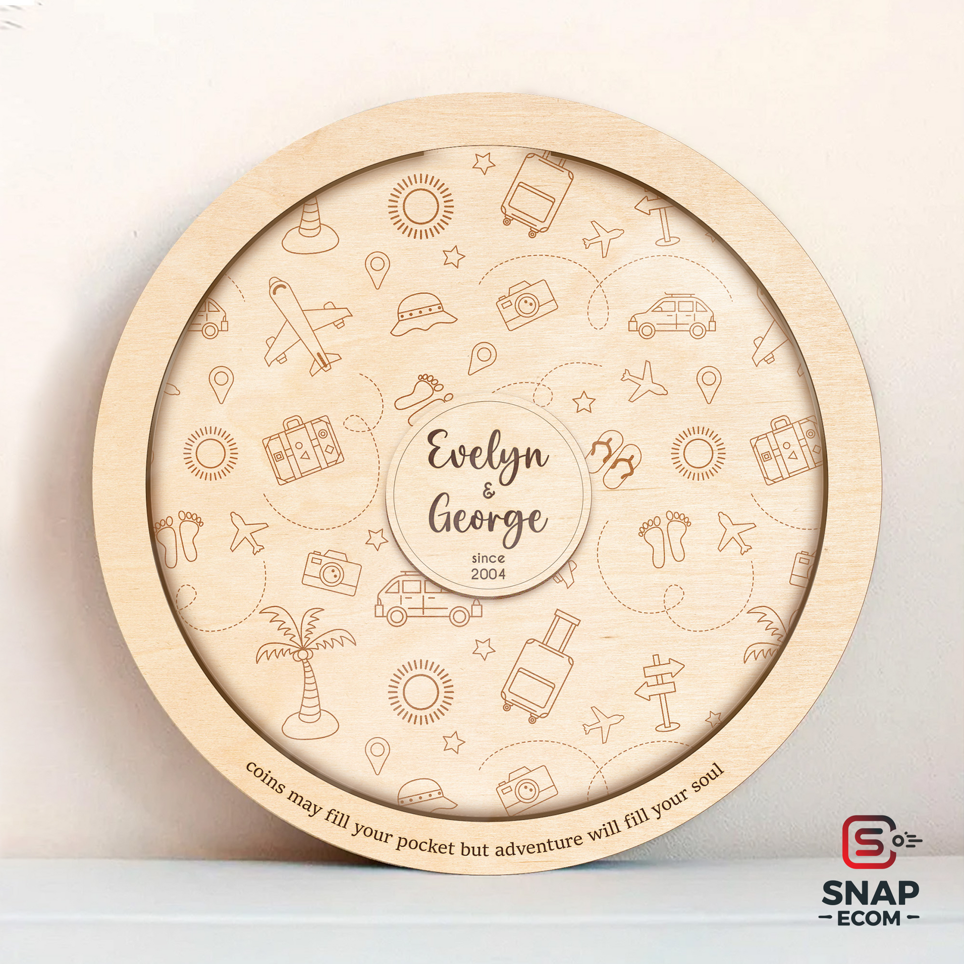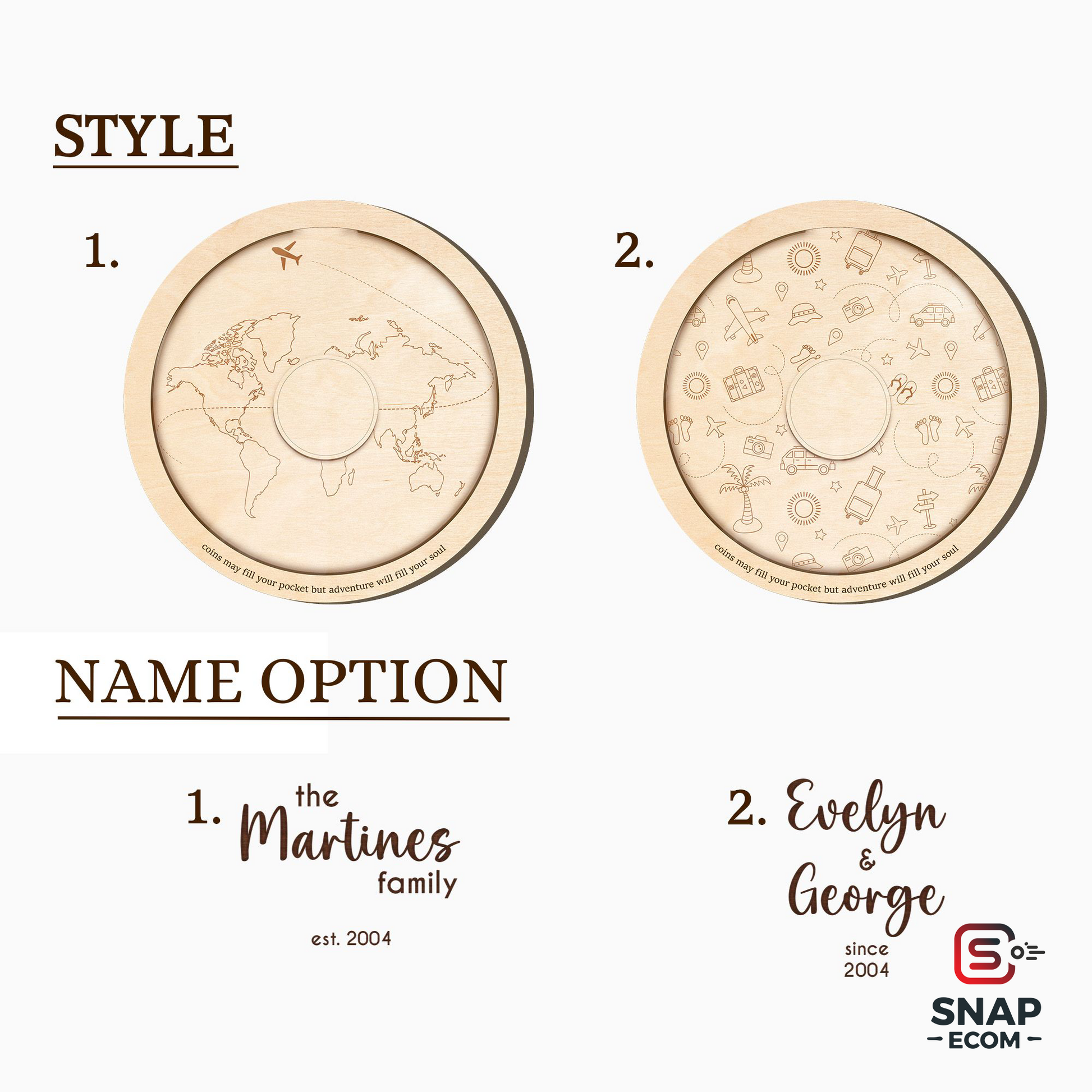 Capture the essence of your adventures with our beautifully crafted personalized travel coin holder. Available in two stunning designs—World Map and Travel Icons—this coin holder is the perfect way to keep your travel memories alive. Customizable in size and with options for personalized text, this piece is both a functional accessory and a cherished keepsake.