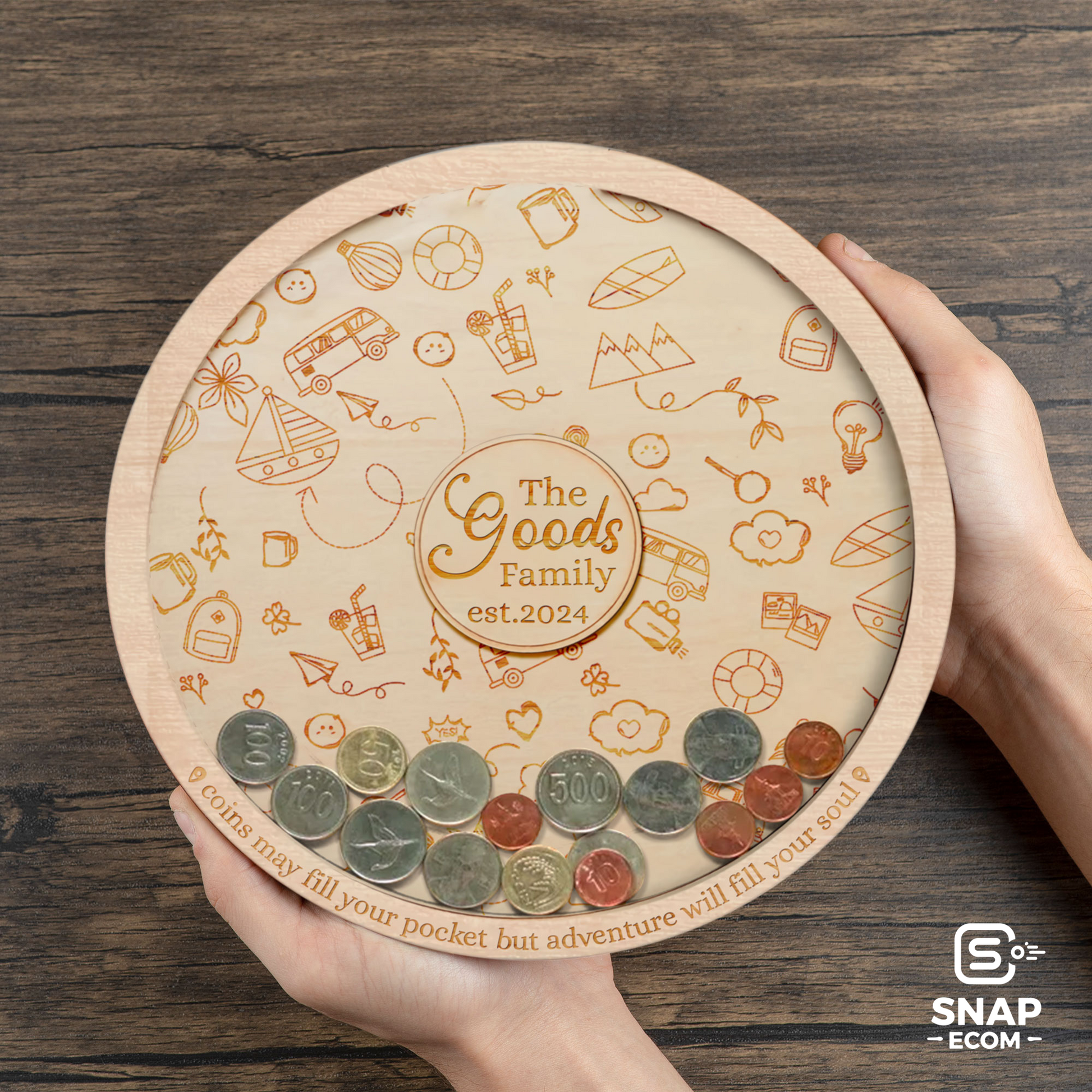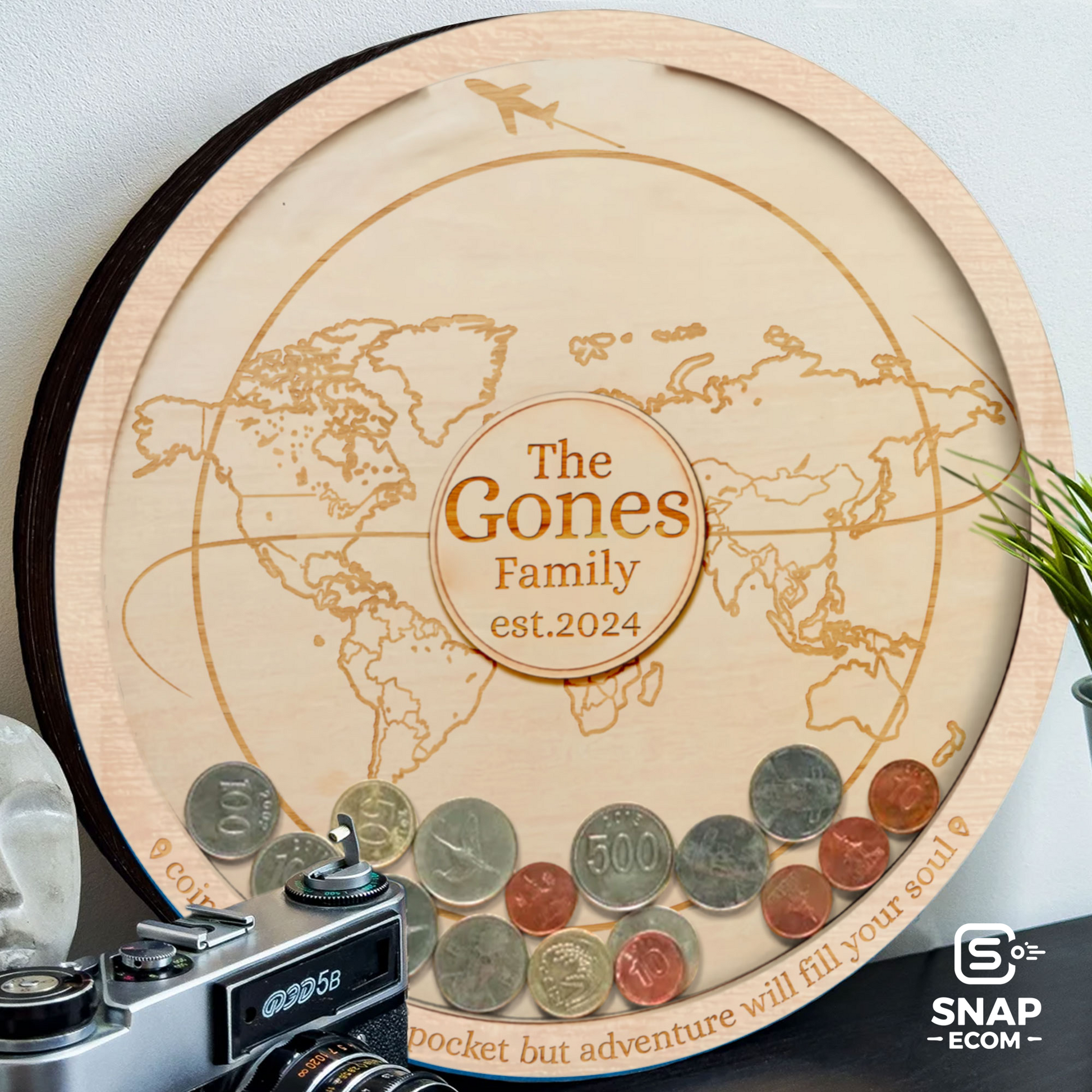 Capture the essence of your adventures with our beautifully crafted personalized travel coin holder. Available in two stunning designs—World Map and Travel Icons—this coin holder is the perfect way to keep your travel memories alive. Customizable in size and with options for personalized text, this piece is both a functional accessory and a cherished keepsake.