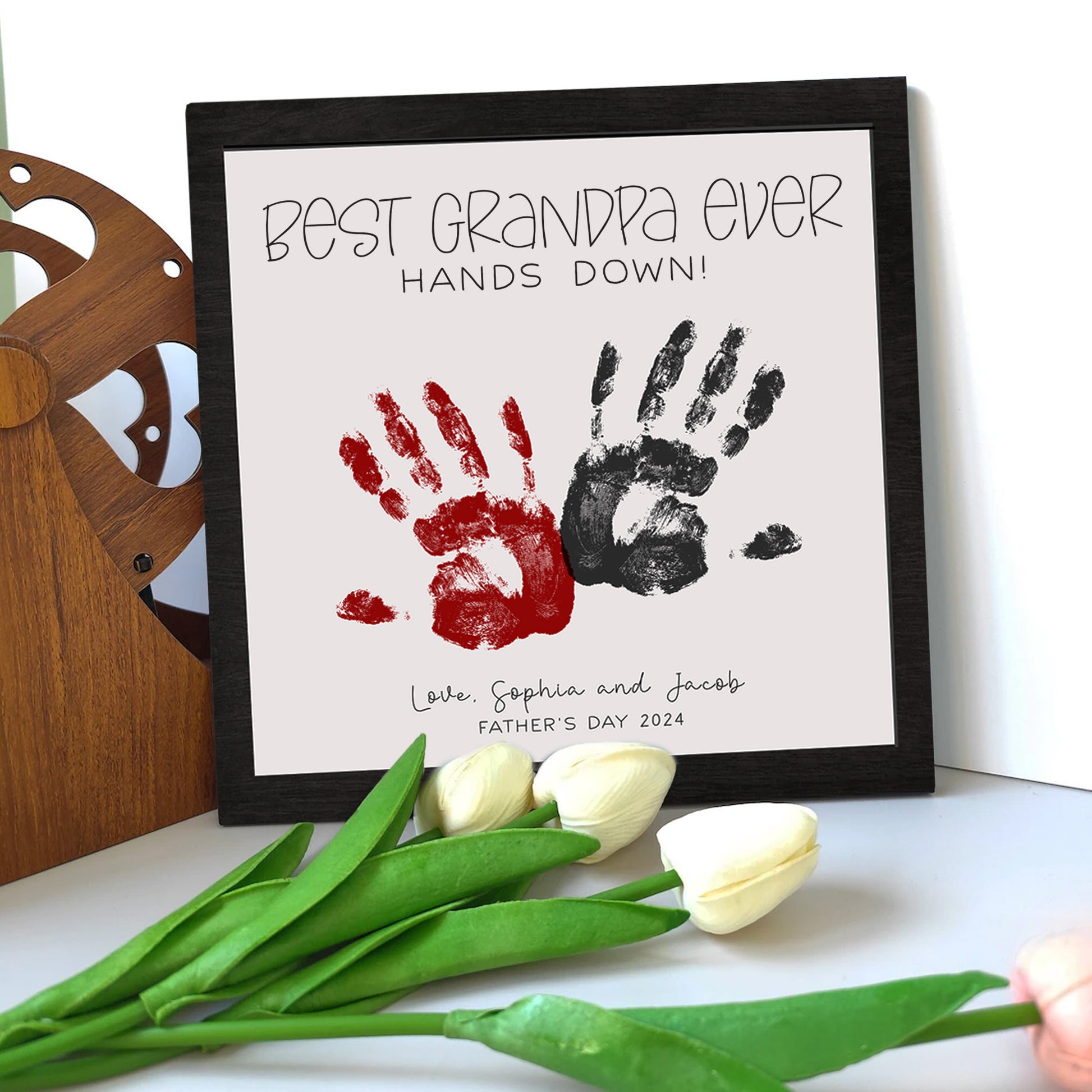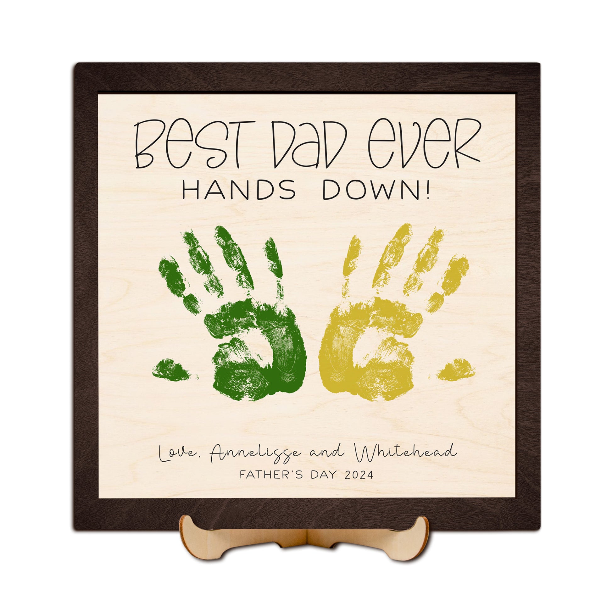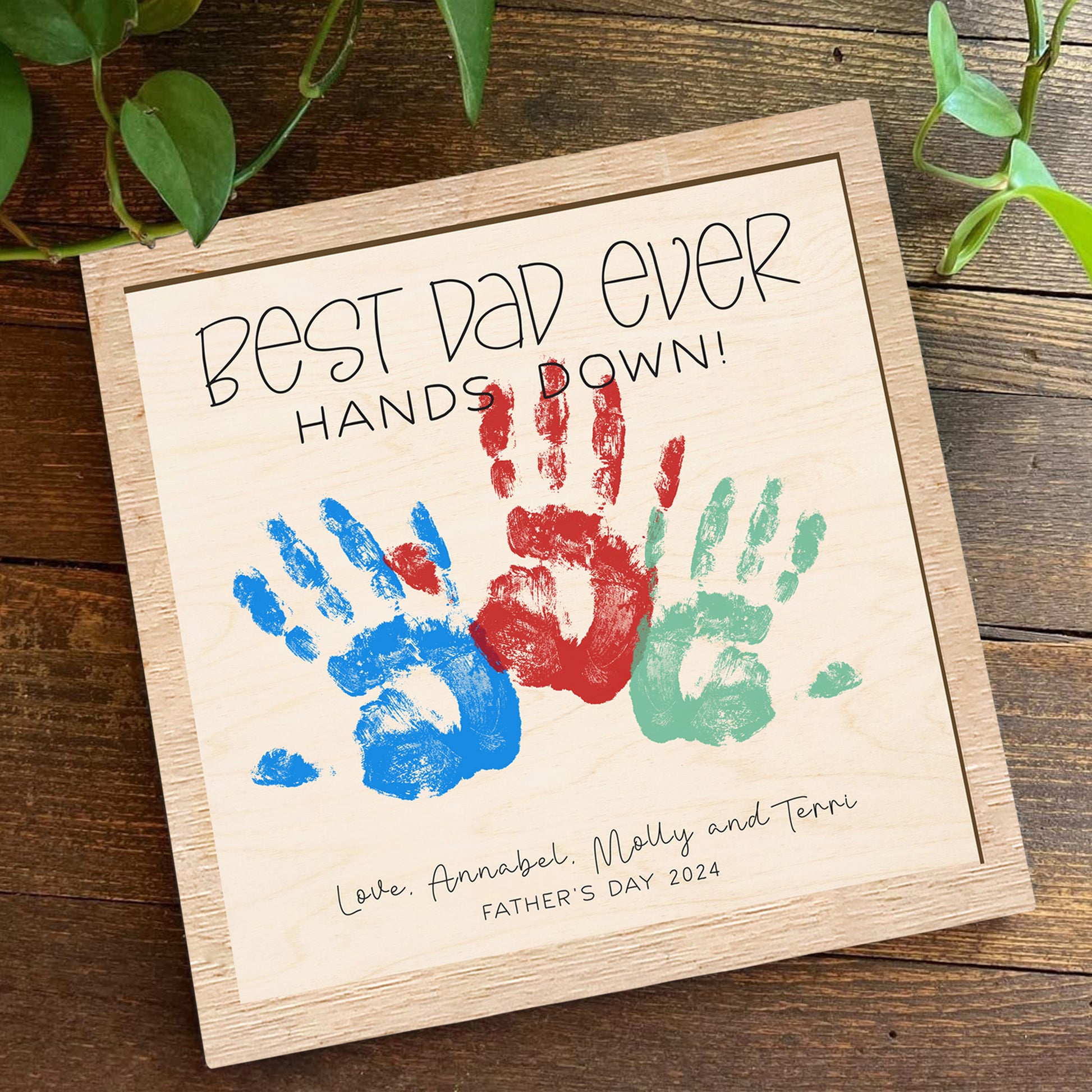 Celebrate Father’s Day with a truly unique and heartfelt gift—our custom wooden handprint sign! Thoughtfully engraved with "Best Dad Ever", this handcrafted piece becomes even more special when personalized with your child's handprints and name, creating a lasting memento of love and appreciation.