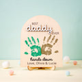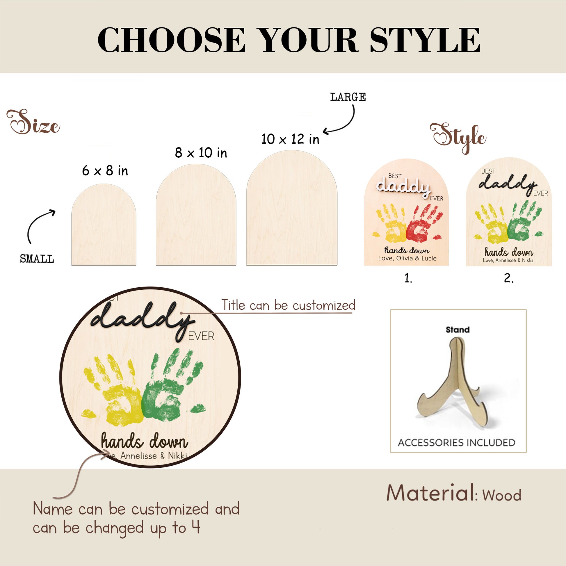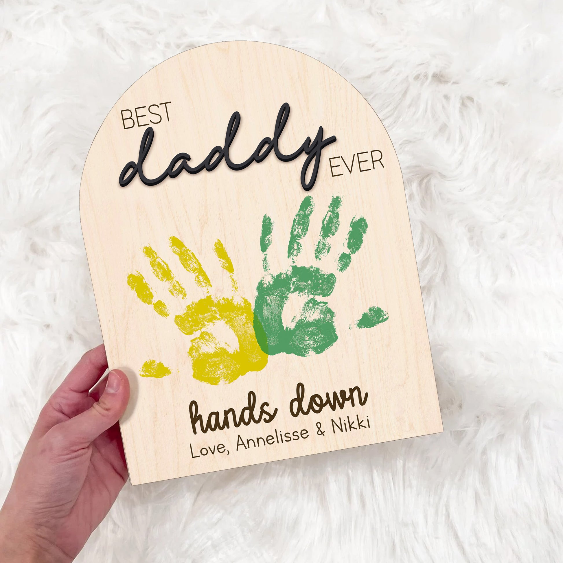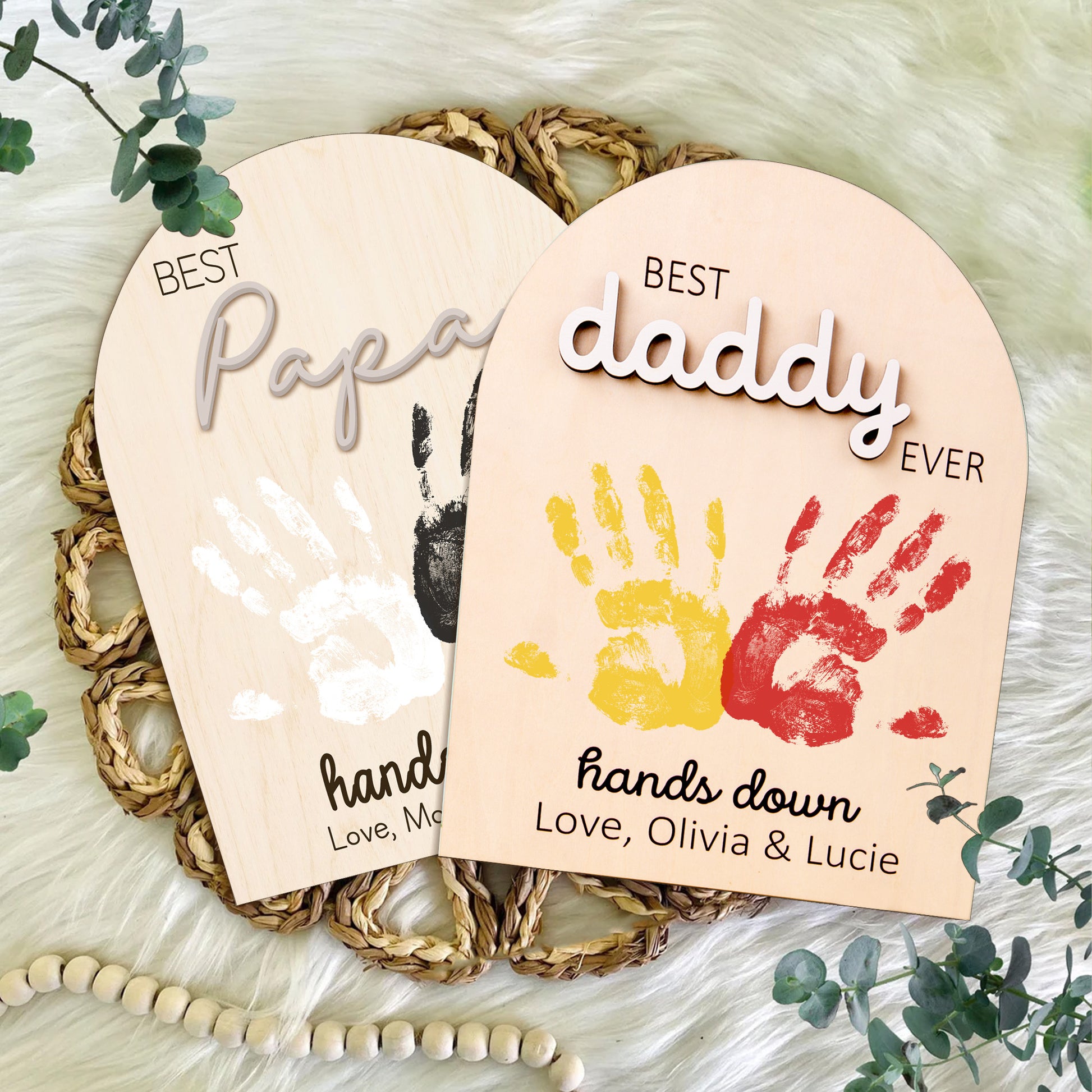 Celebrate Father’s Day with a truly unique and heartfelt gift—our custom wooden handprint sign! Thoughtfully engraved with "Best Dad Ever", this handcrafted piece becomes even more special when personalized with your child's handprints and name, creating a lasting memento of love and appreciation.