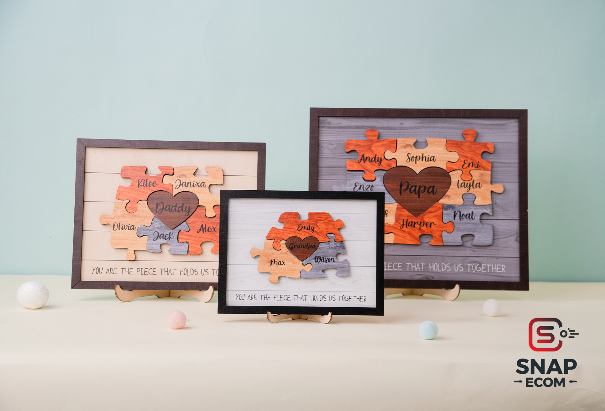 Each engraved puzzle piece represents a cherished family member, with no limit on the number of names you can include! For designs with 5+ names, we recommend choosing a larger size for the best fit.