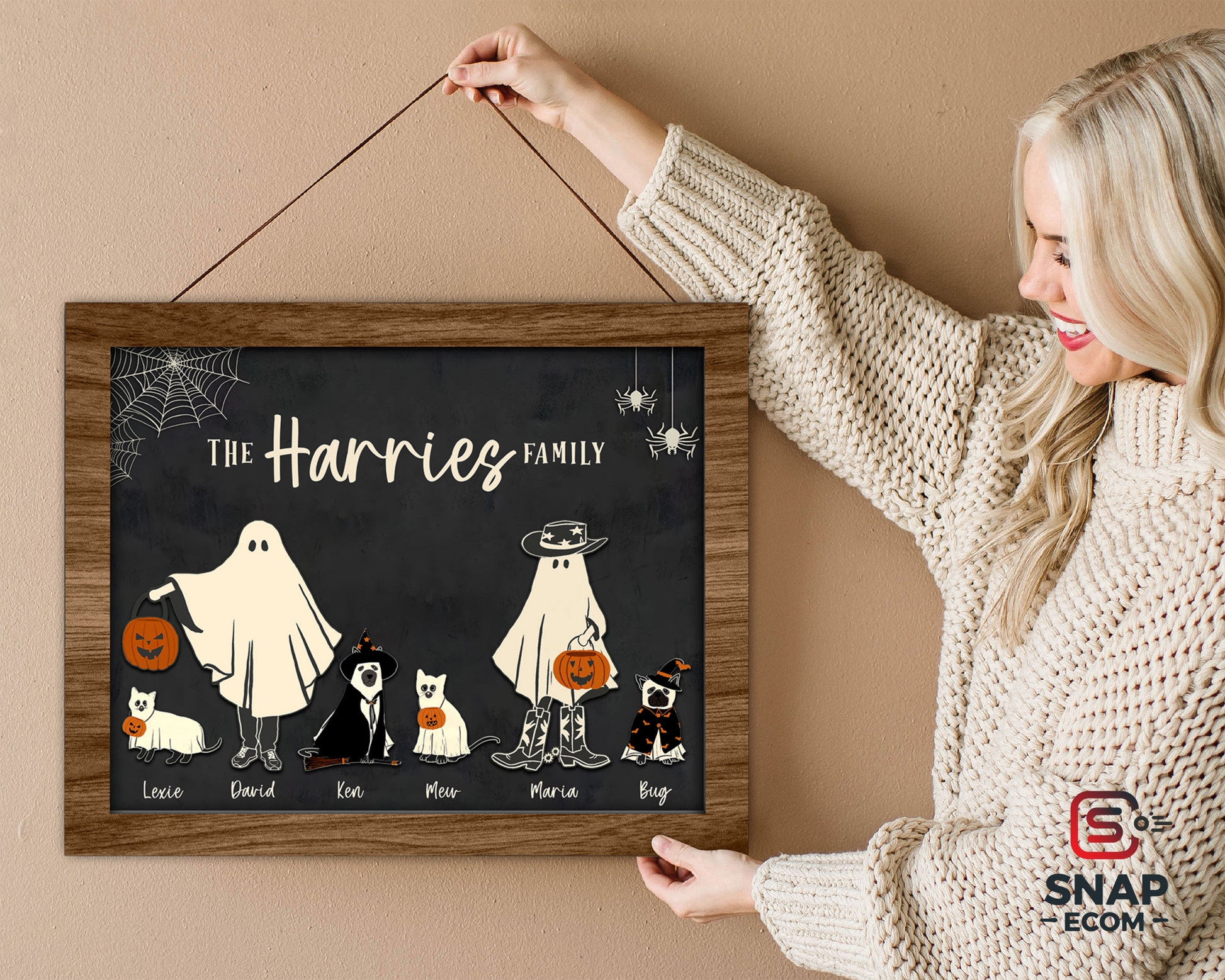 Add a festive and personalized touch to your Halloween décor with our custom wooden family plaque! Featuring adorable ghosts and pets, this handcrafted sign is the perfect way to celebrate the spooky season with your loved ones. Personalize it with your family name for a one-of-a-kind keepsake that will delight both kids and adults alike!