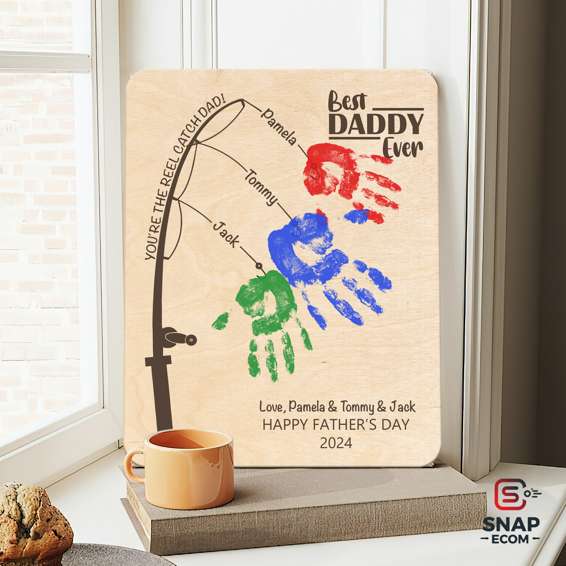 Personalized Wooden Fish Handprint – A Heartfelt Gift for Dad! 🎣