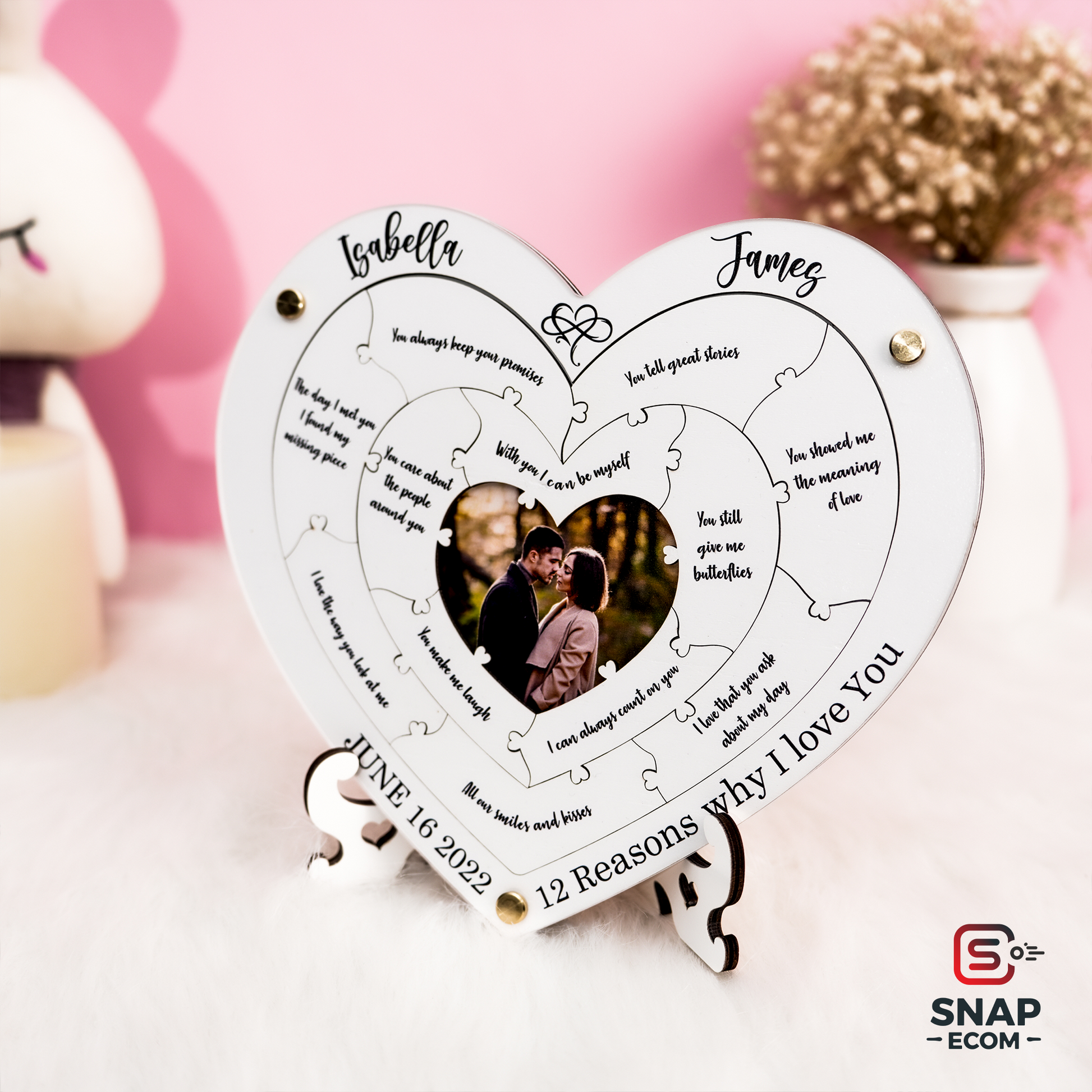 Looking for a unique and heartfelt way to express your love? This Personalized Wooden Heart Puzzle Photo Frame is the perfect romantic gift for anniversaries, weddings, engagements, birthdays, or any special moment.