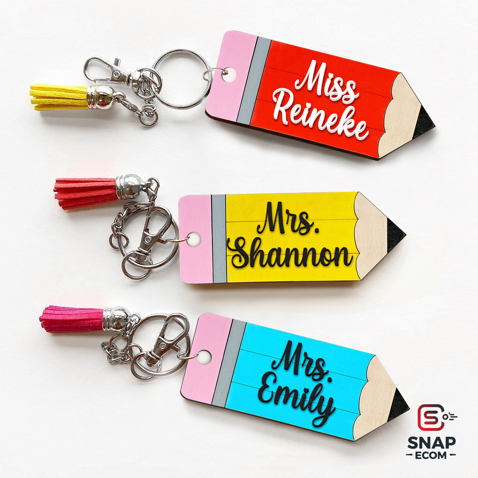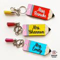 ✏️ Classic Pencil Design – A double-layered acrylic keychain that mimics the look of a traditional pencil, customized with the teacher's name for a personal touch.