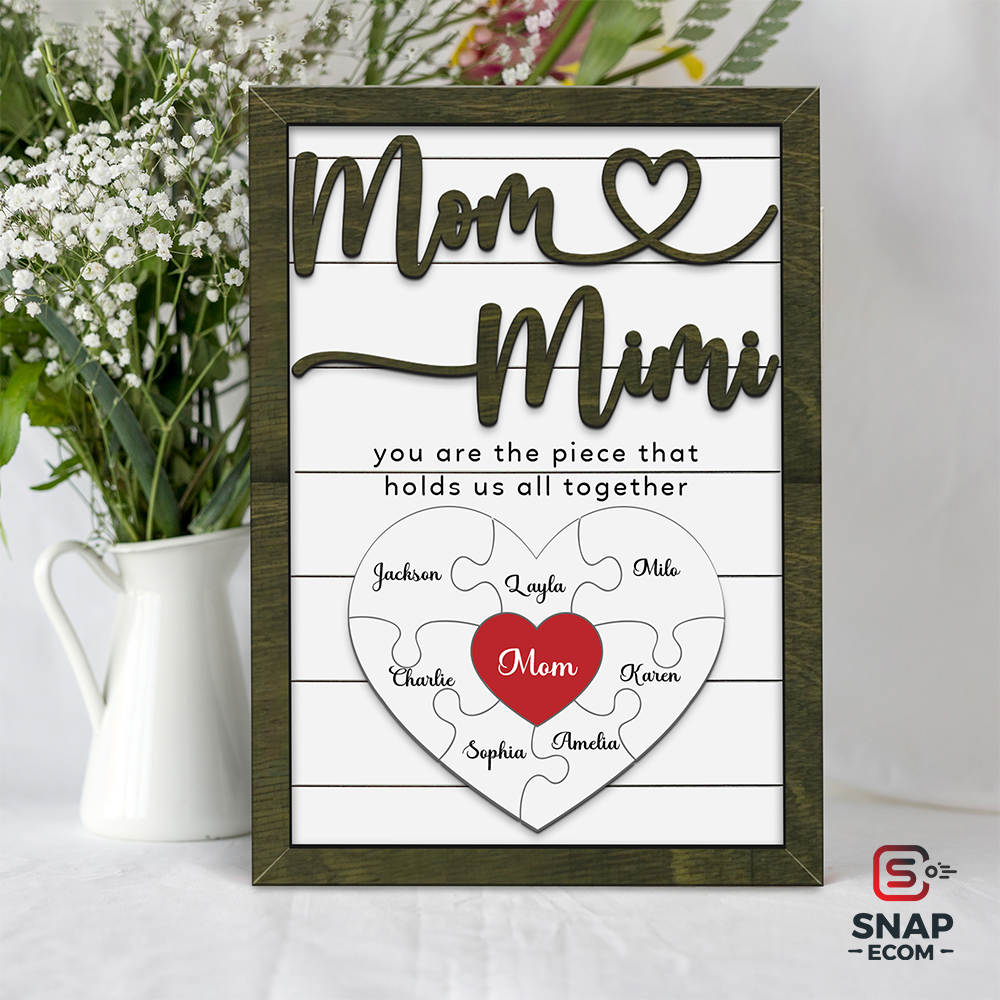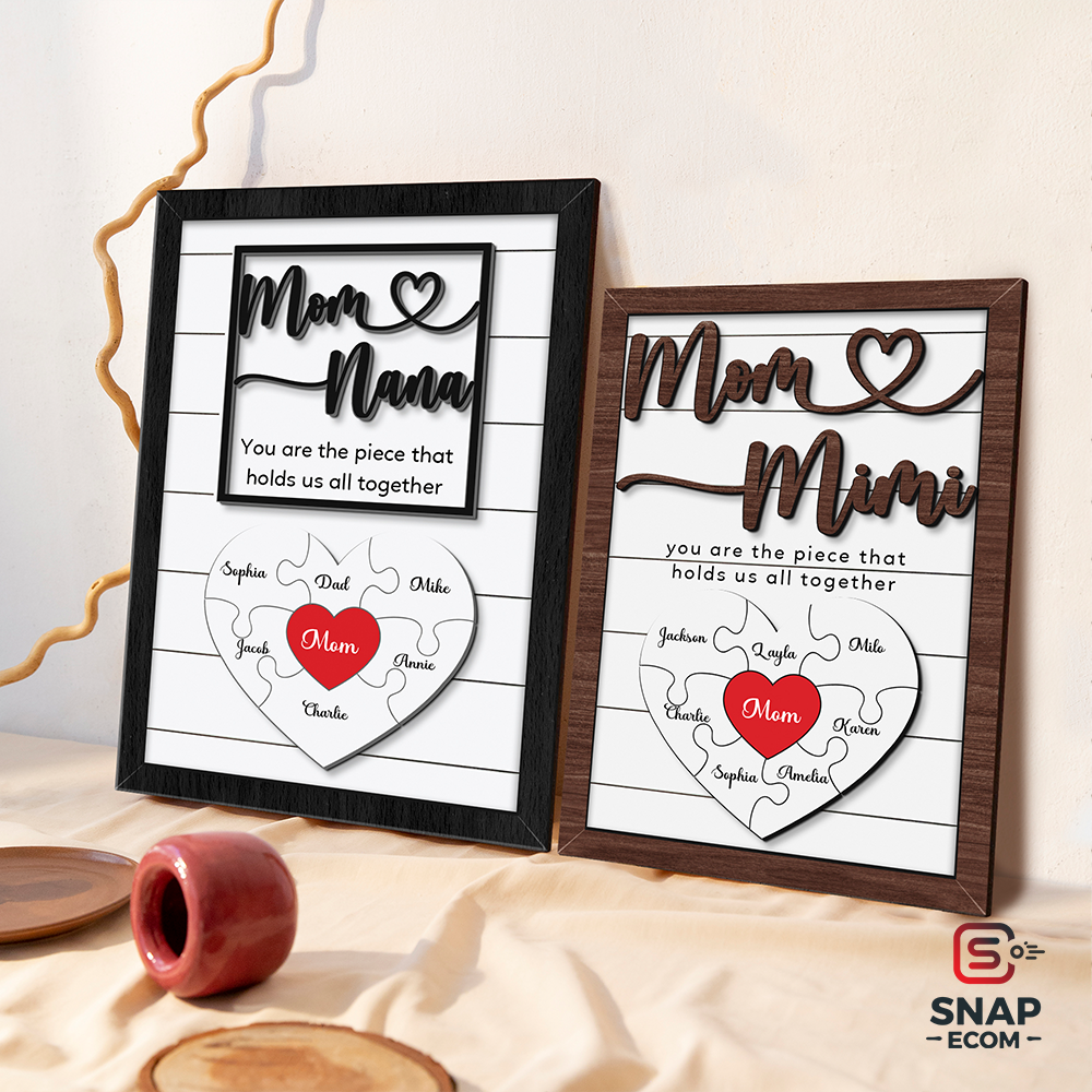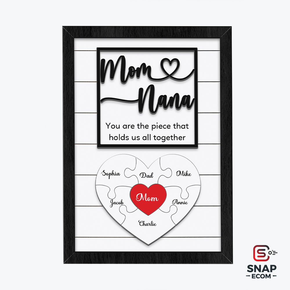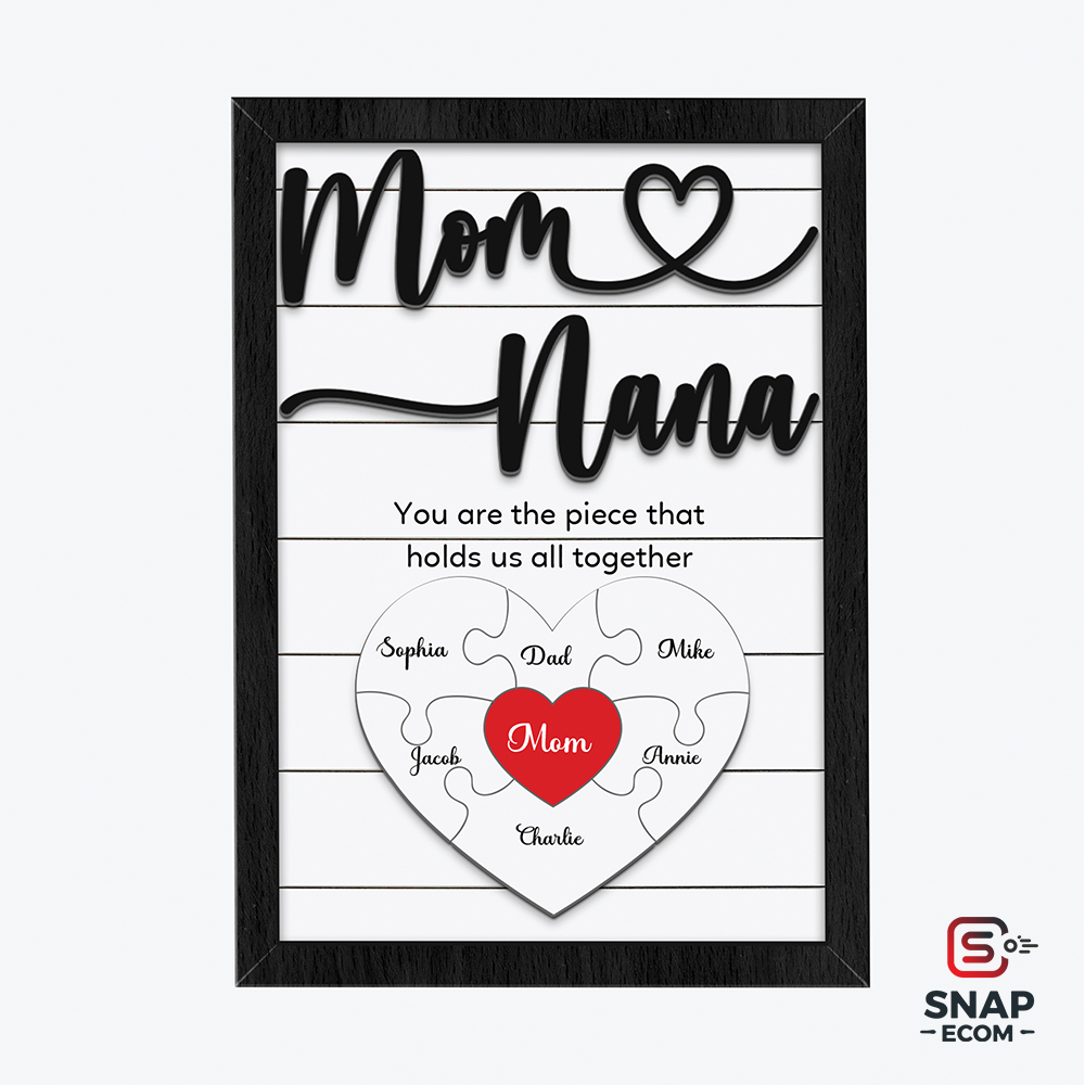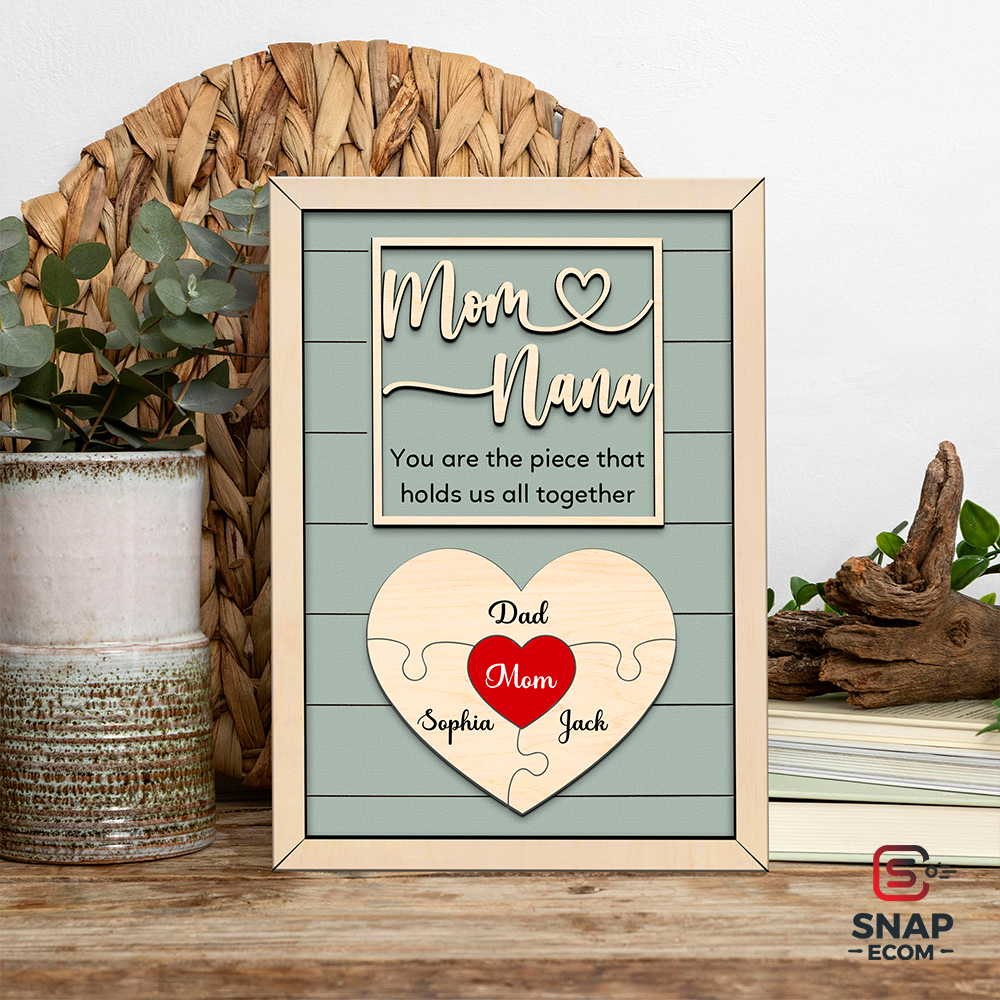 - Premium Quality Wood: Made from durable 2-layer wood with intricate, raised details (puzzle pieces, "Mom," "Nana," and frame).
