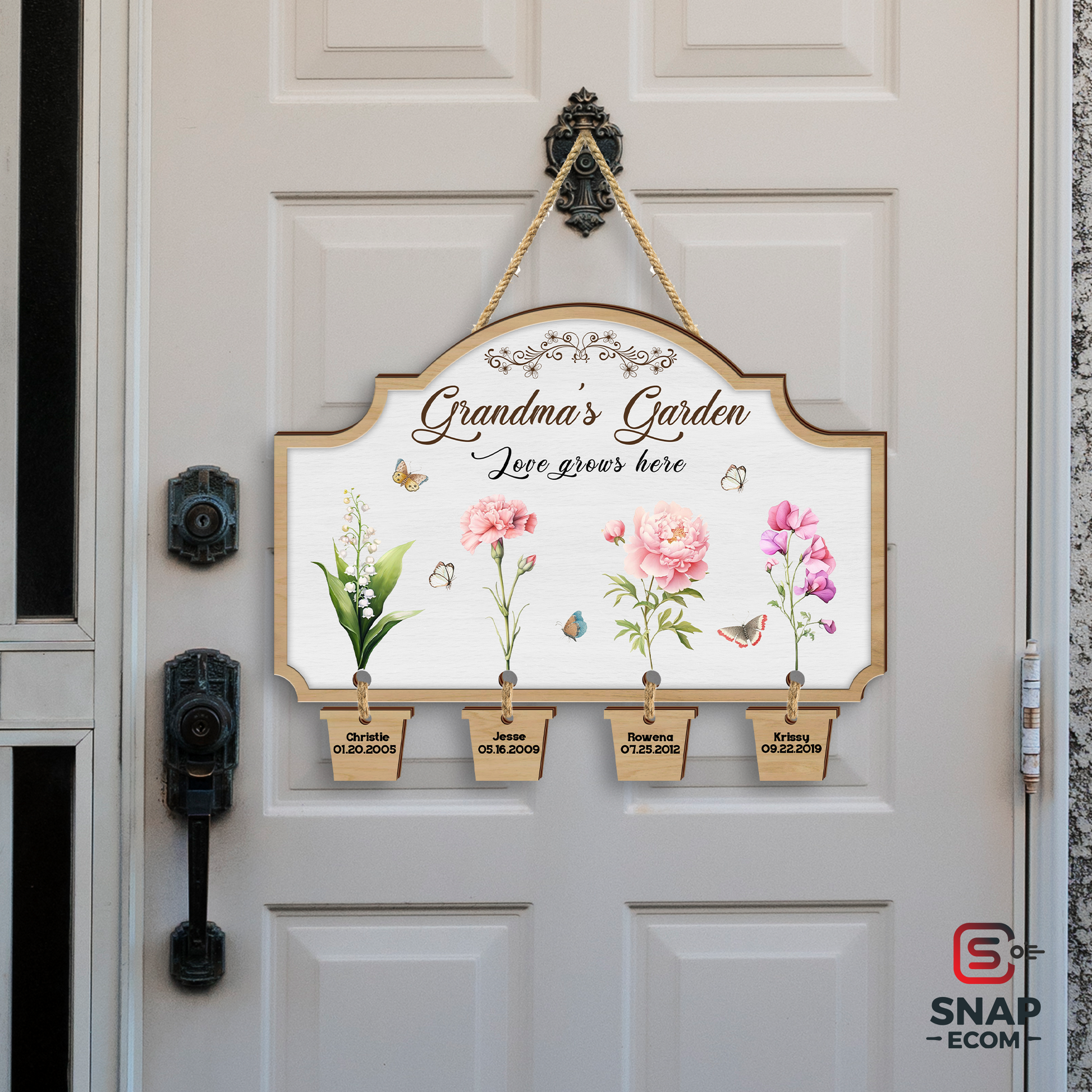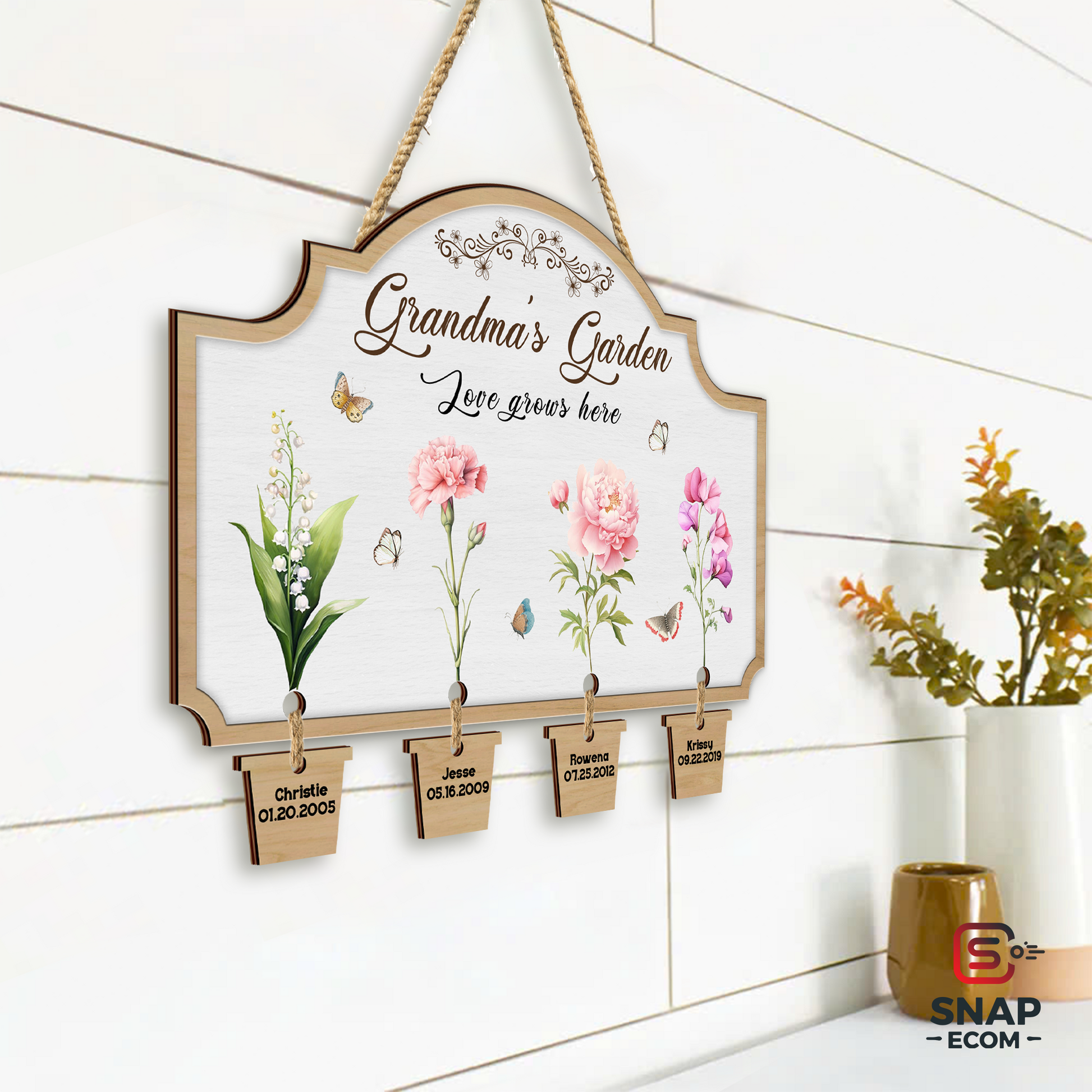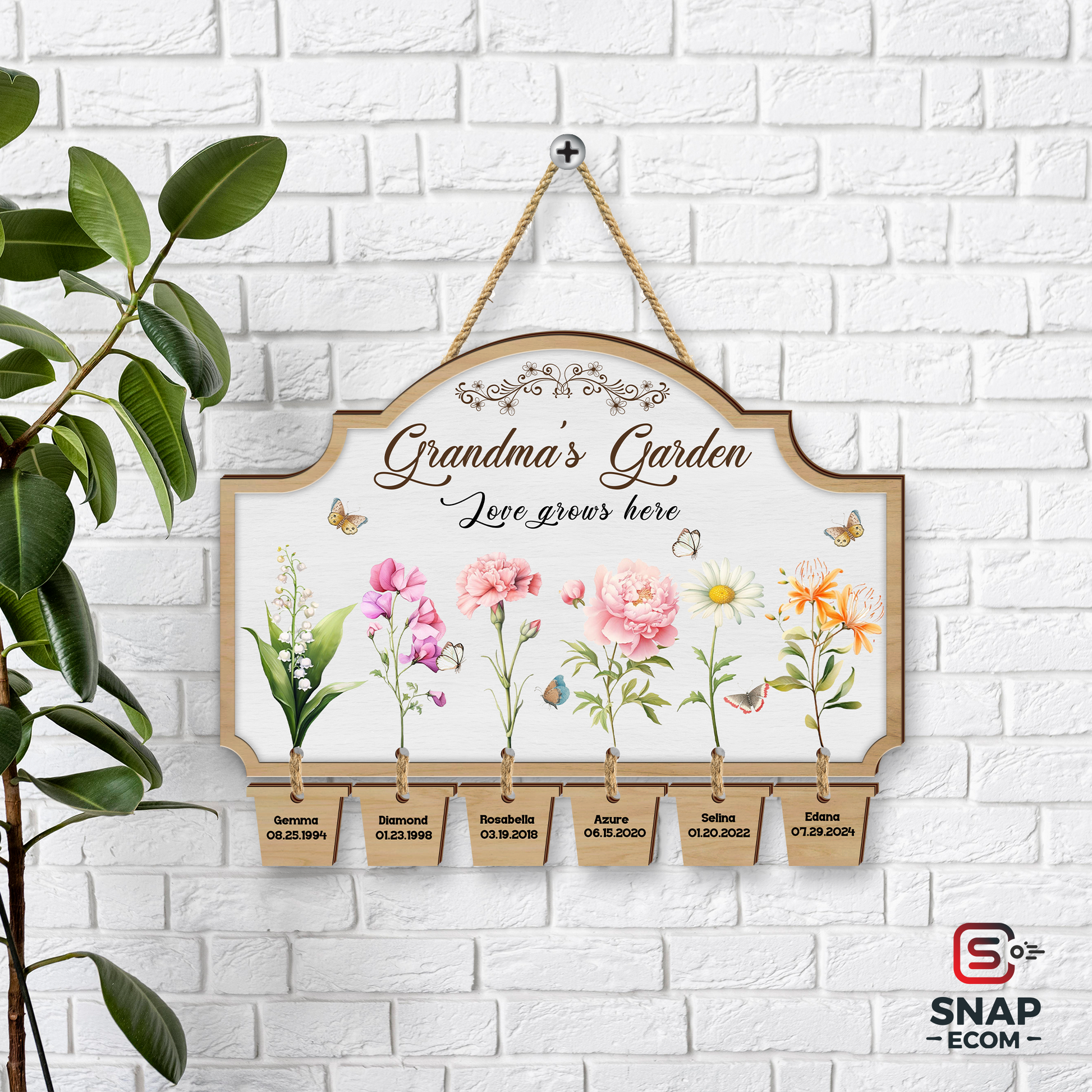 Celebrate the love and warmth of Mom’s or Grandma’s garden with this beautifully customized wooden sign! Featuring delicate floral designs with each child's or grandchild's name and birthdate, this sign is a perfect Mother’s Day, birthday, or special occasion gift.