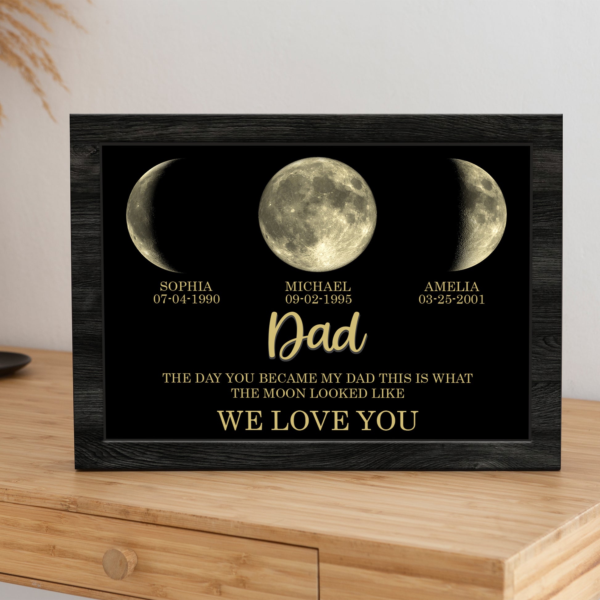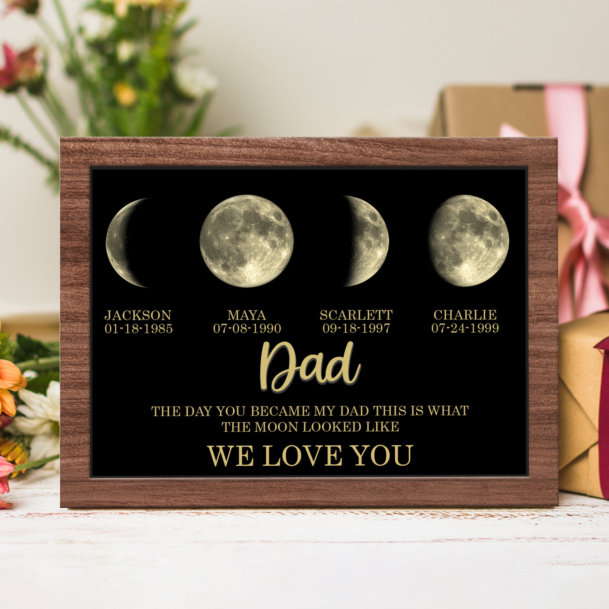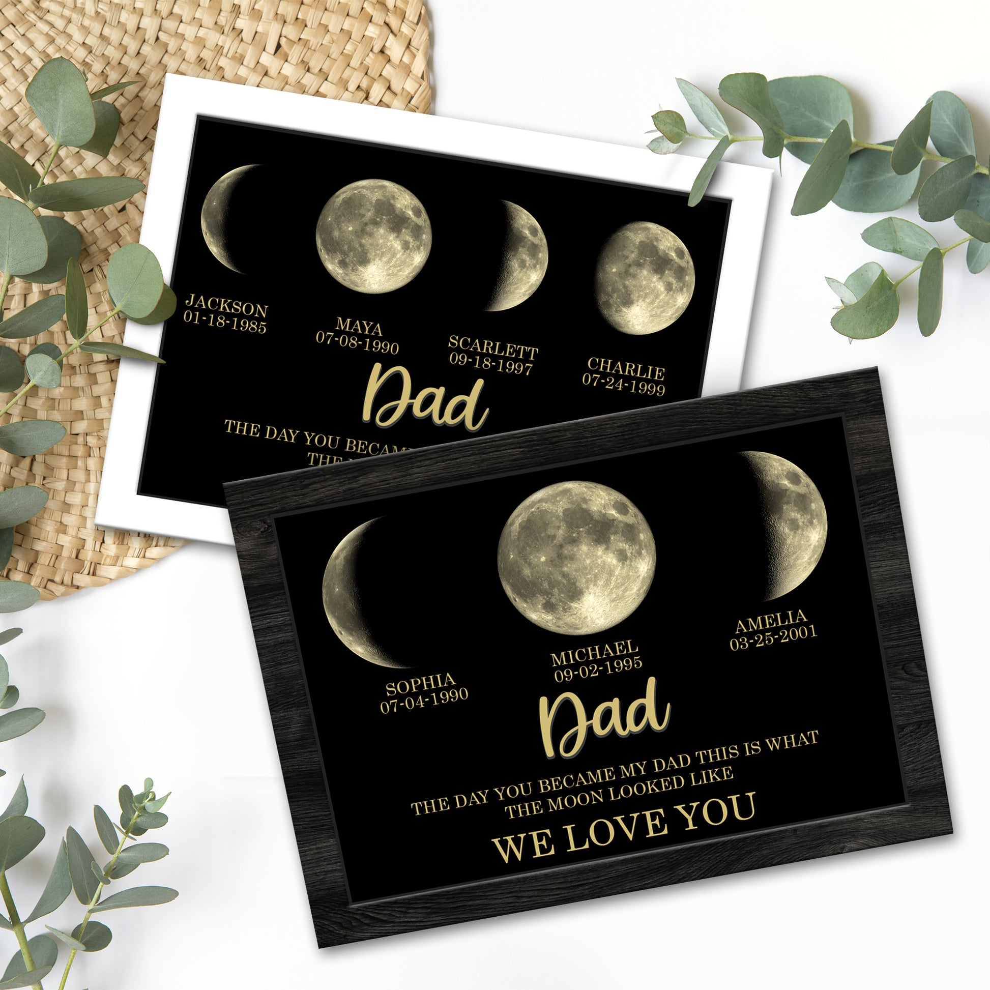 ✔ Custom Moon Phase Design: Personalize with names and birth dates, symbolizing the moment they became a parent.