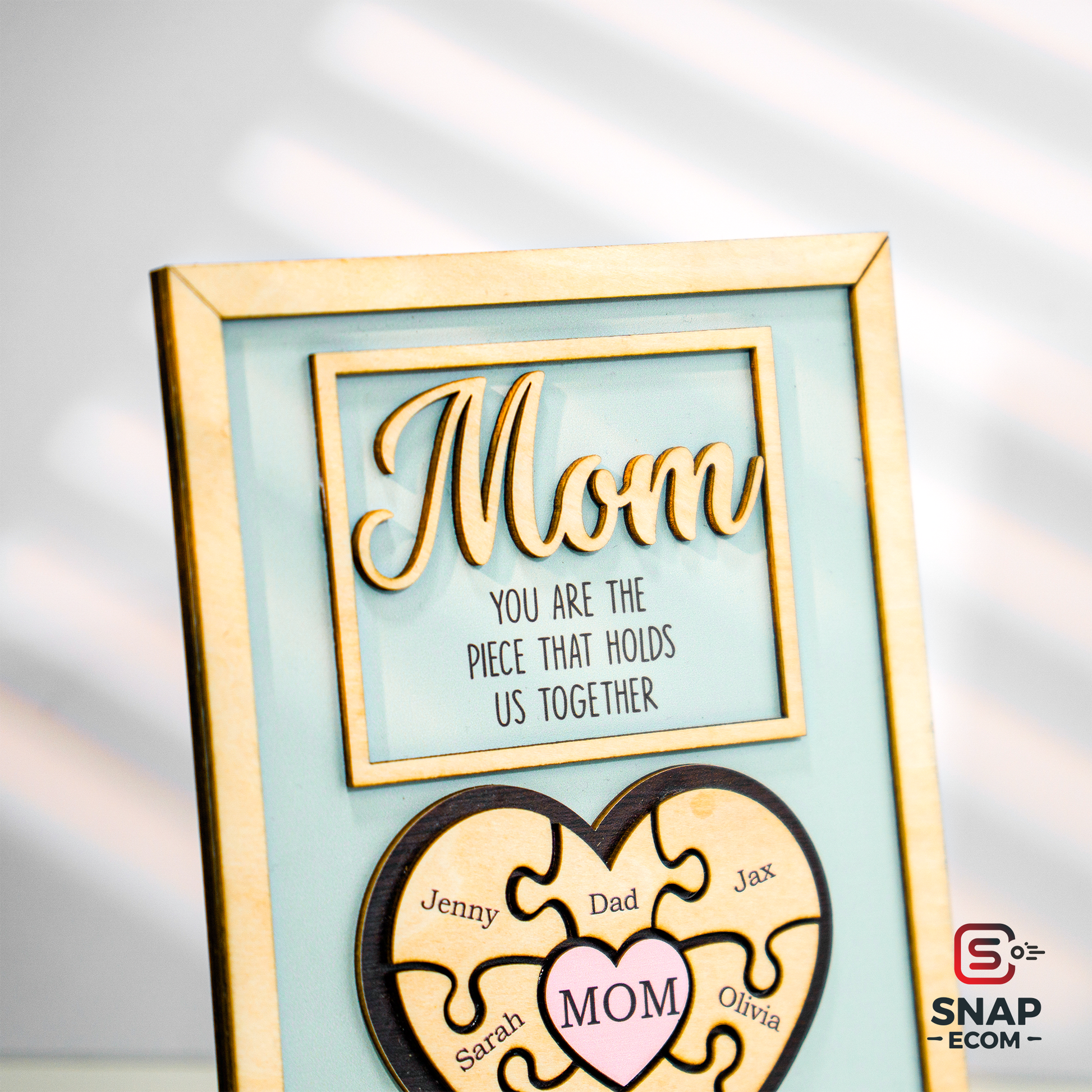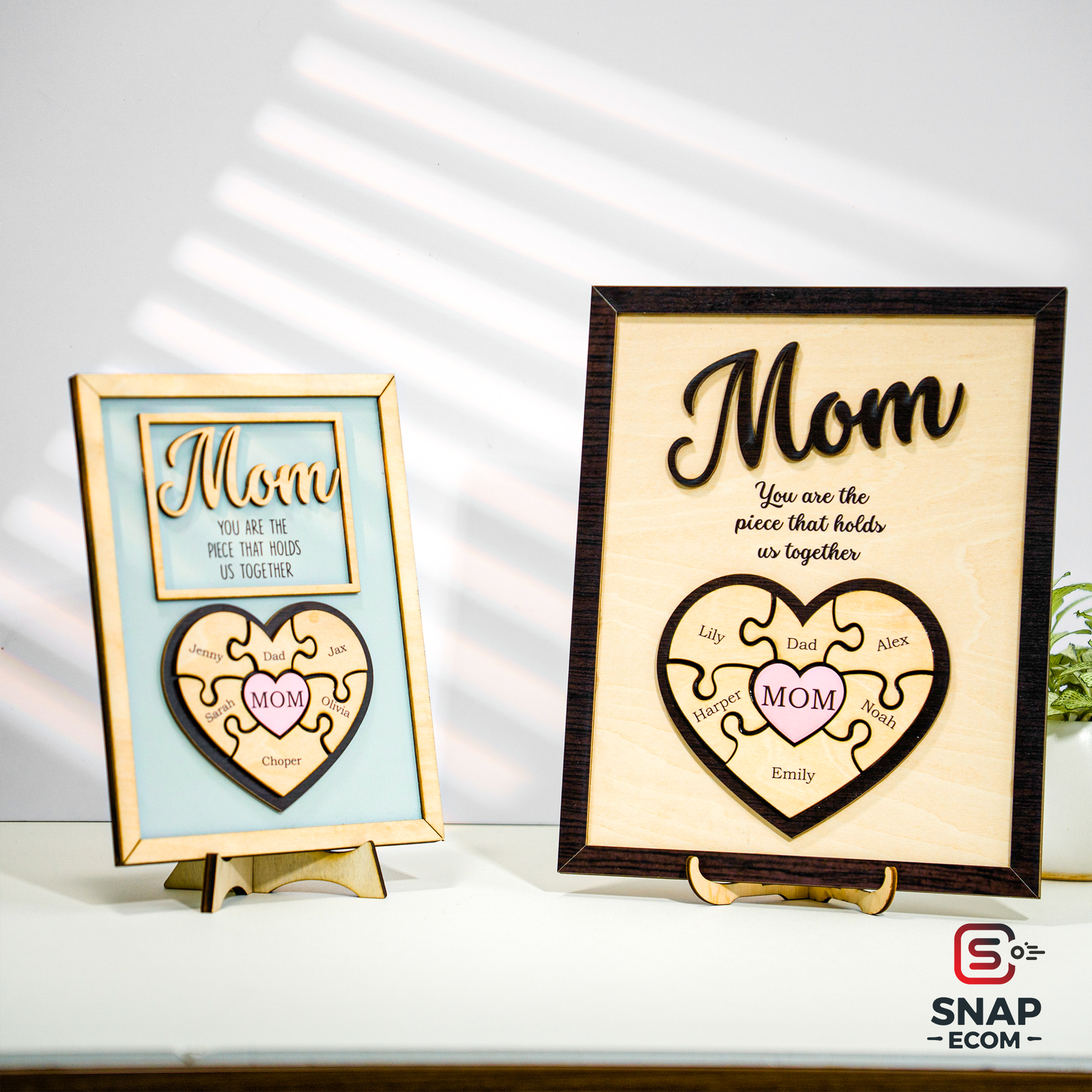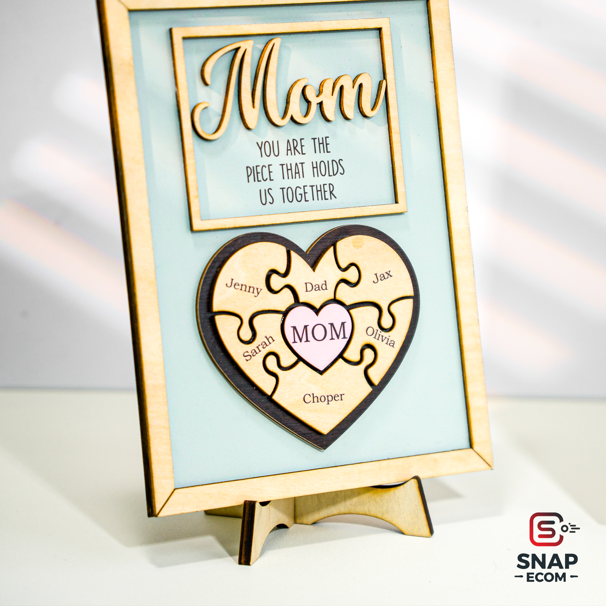 Celebrate the love and bond you share with your mom with our beautifully crafted Mother’s Day Puzzle Wooden Sign. This unique wooden sign features an interlocking puzzle design, symbolizing the special connection between you and your mother. Personalize it with names, heartfelt messages, or custom details to create a meaningful keepsake that she’ll cherish forever.