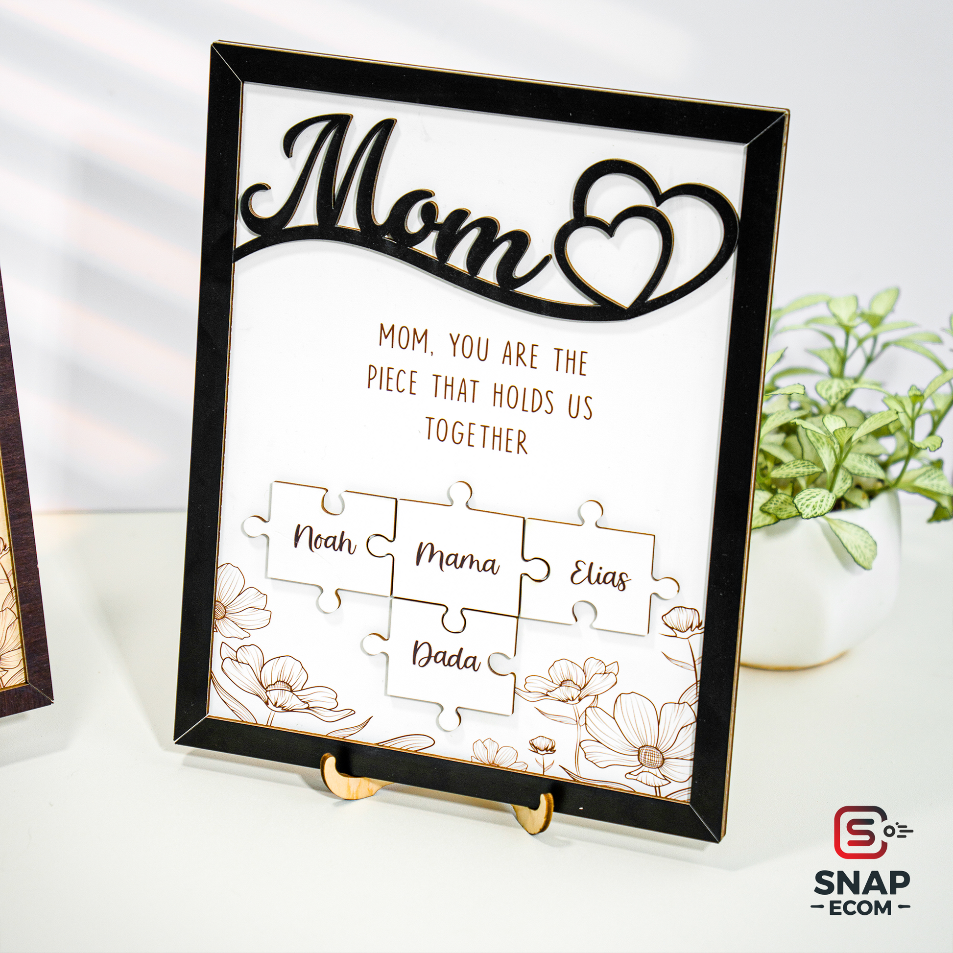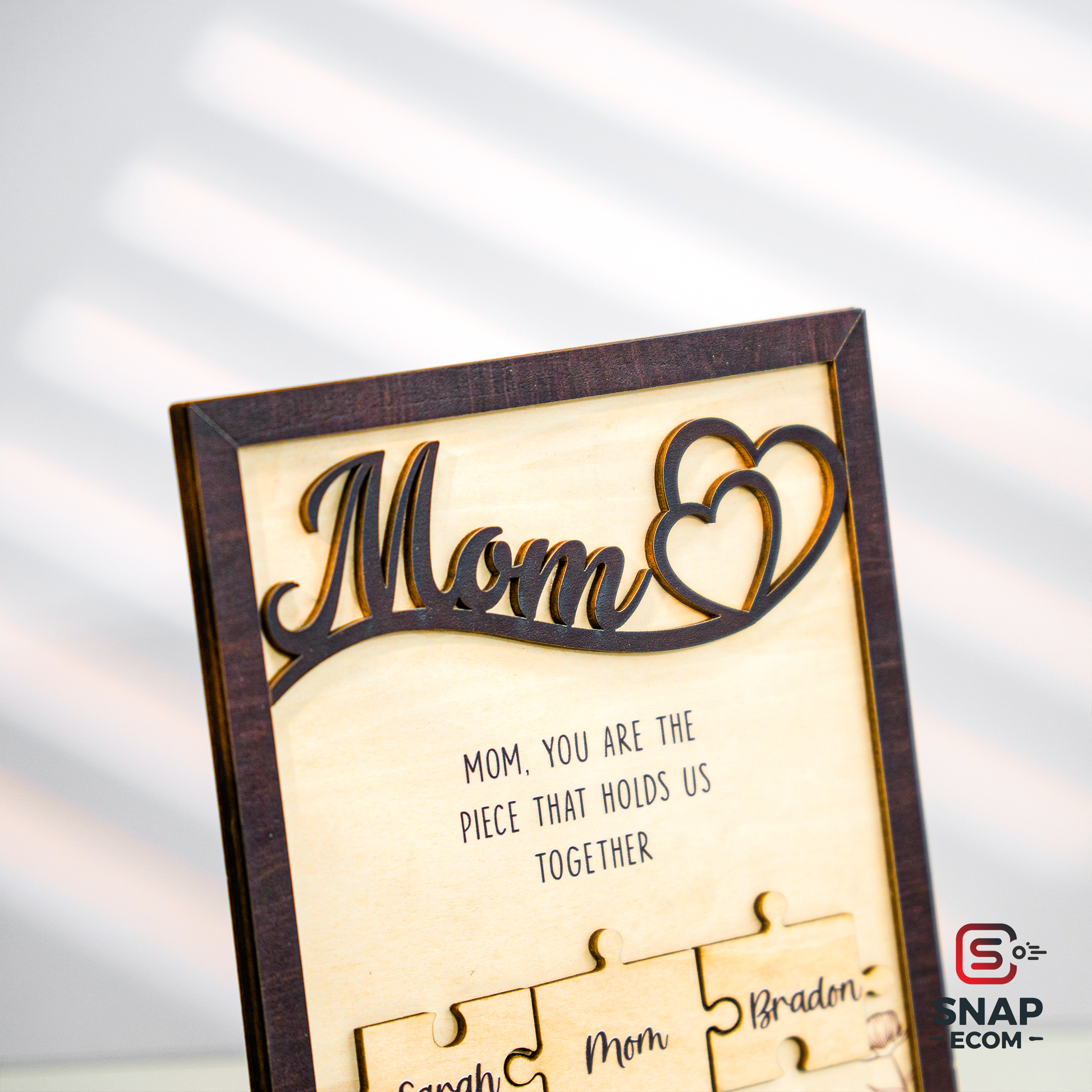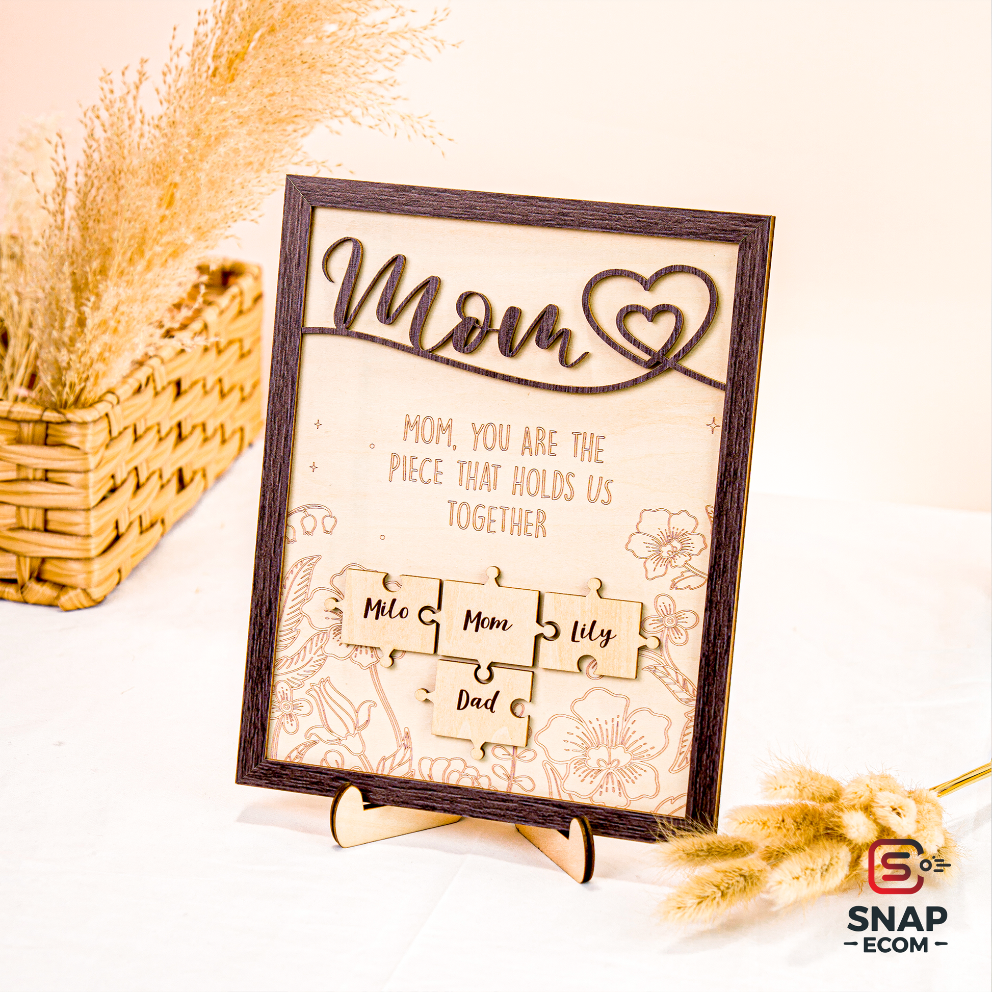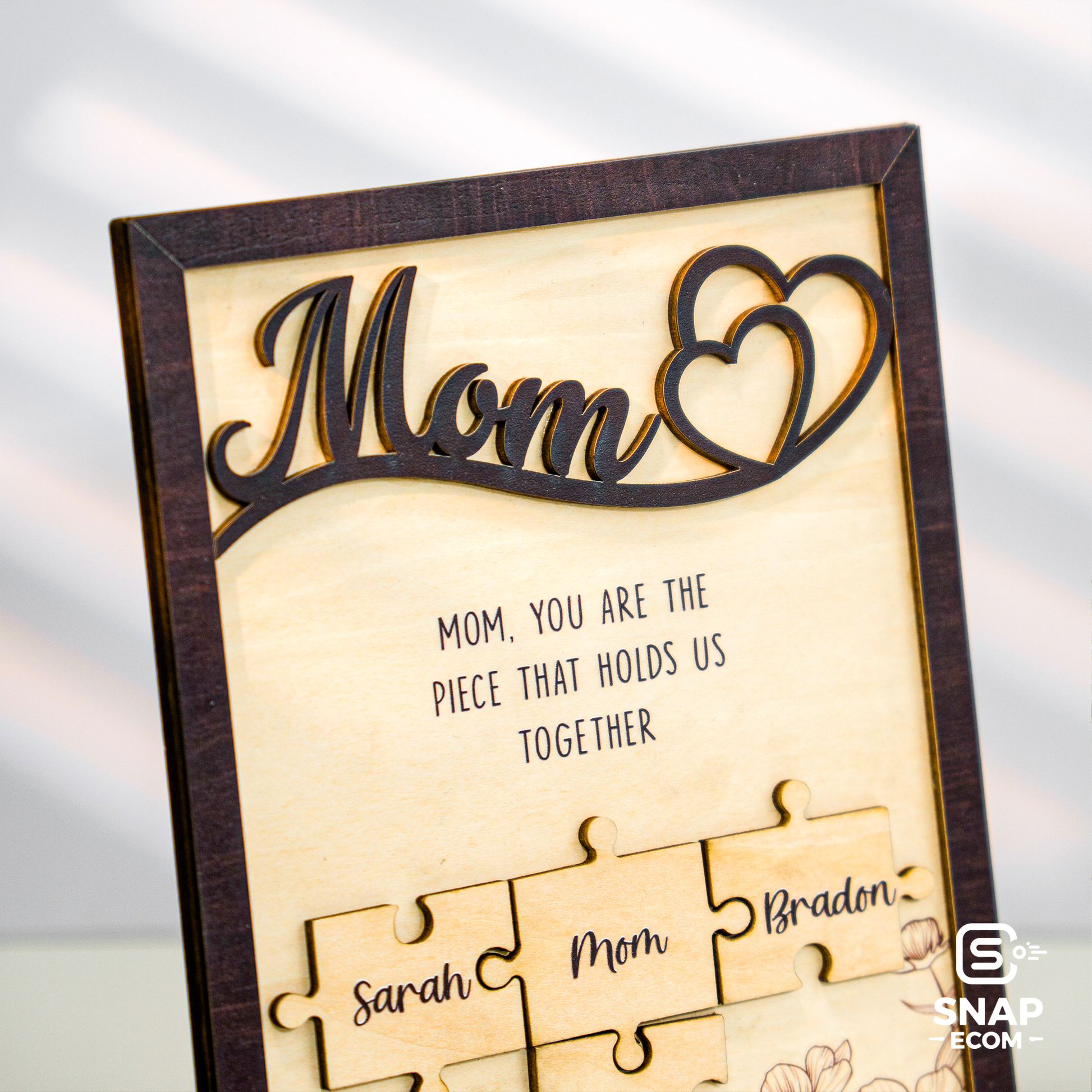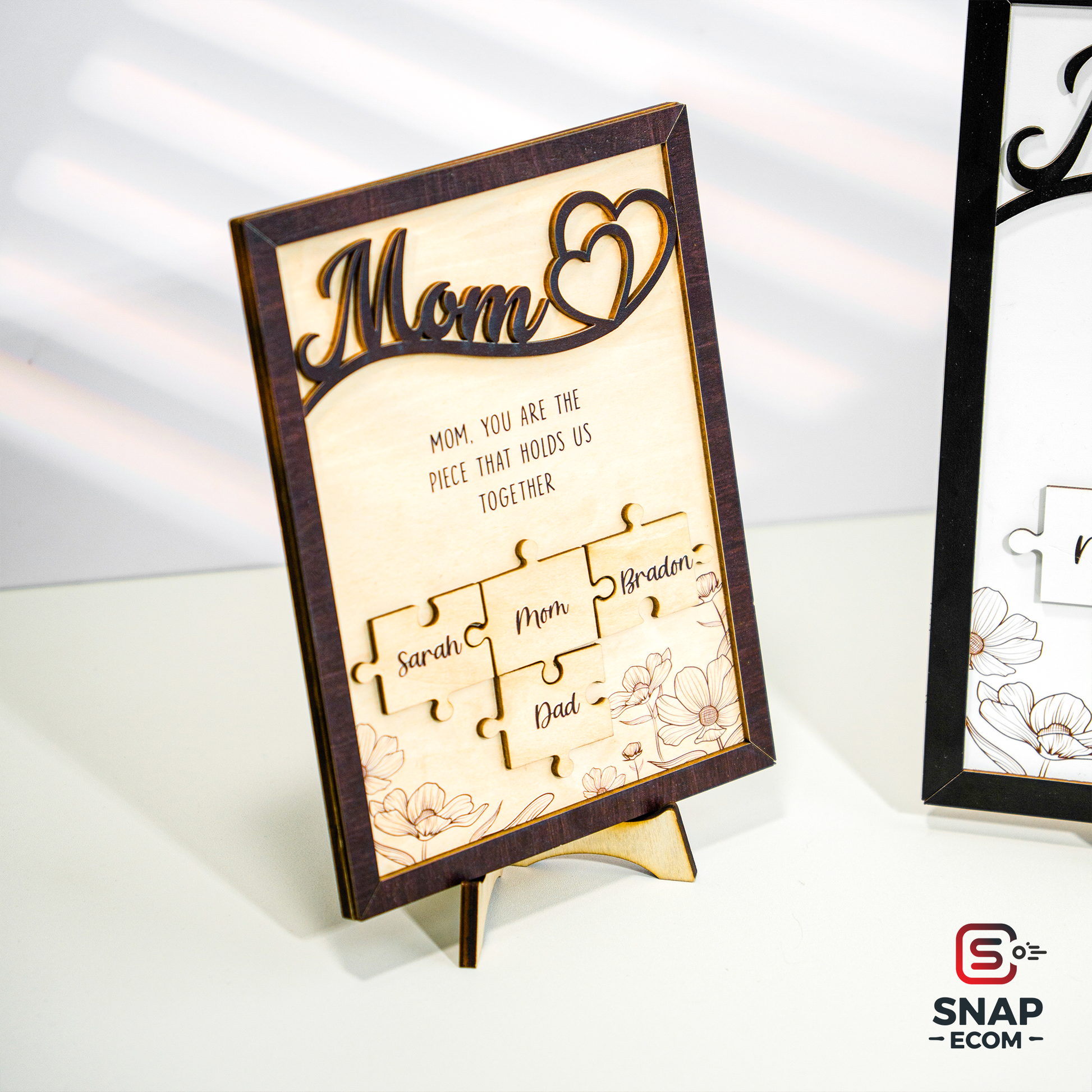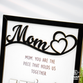 Celebrate the love and bond you share with your mom with our beautifully crafted Mother’s Day Puzzle Wooden Sign. This unique wooden sign features an interlocking puzzle design, symbolizing the special connection between you and your mother. Personalize it with names, heartfelt messages, or custom details to create a meaningful keepsake that she’ll cherish forever.
