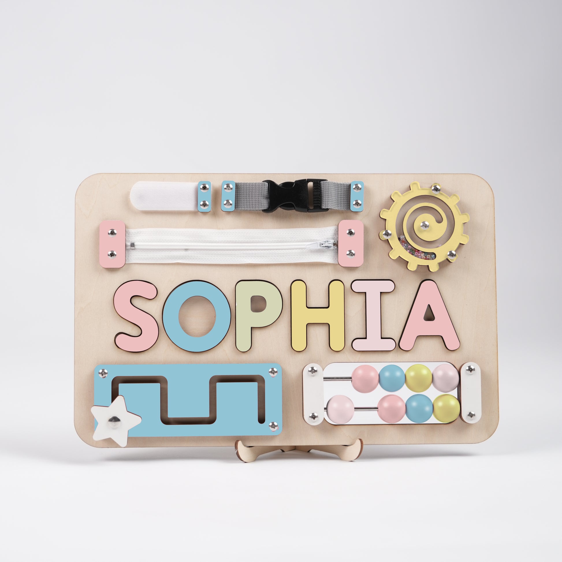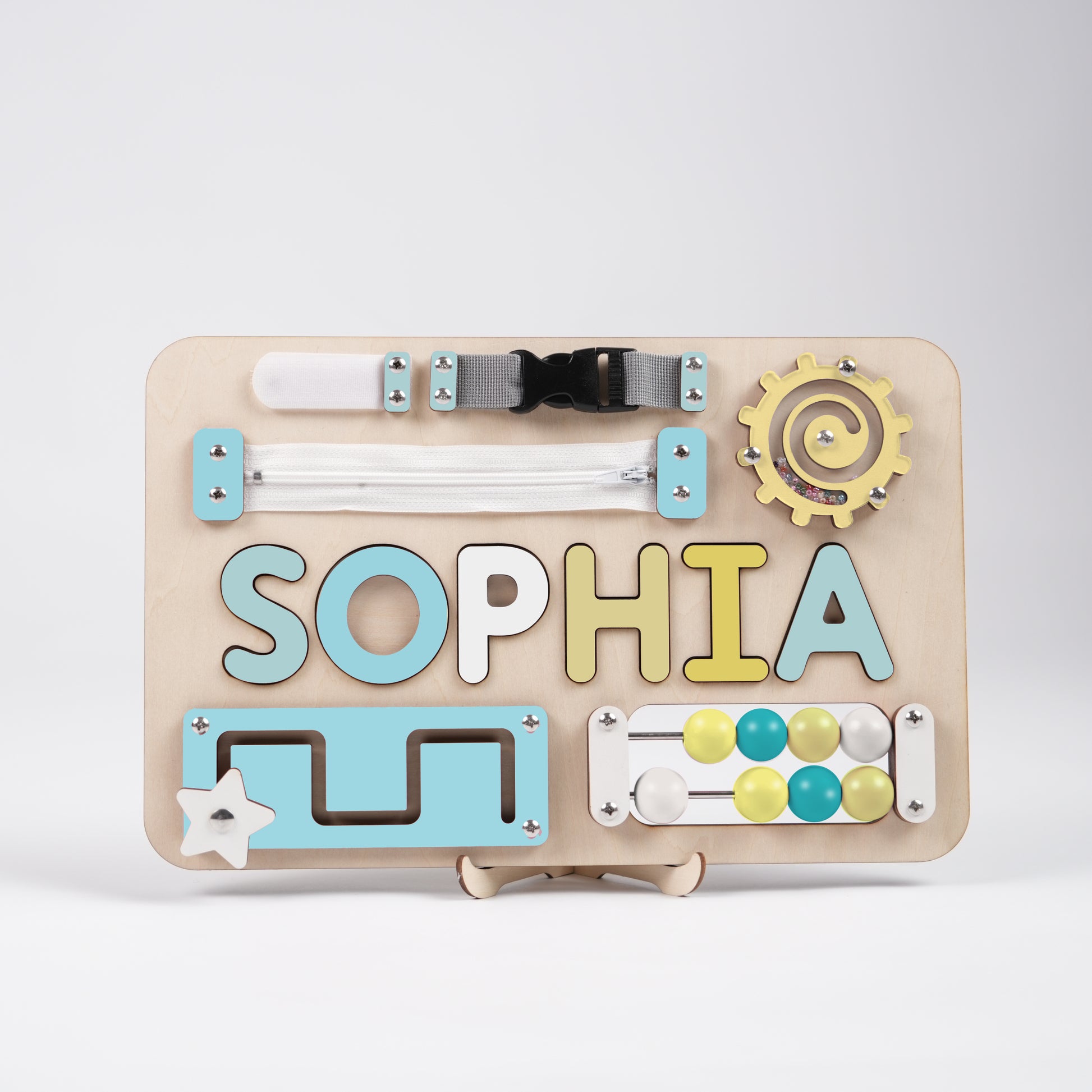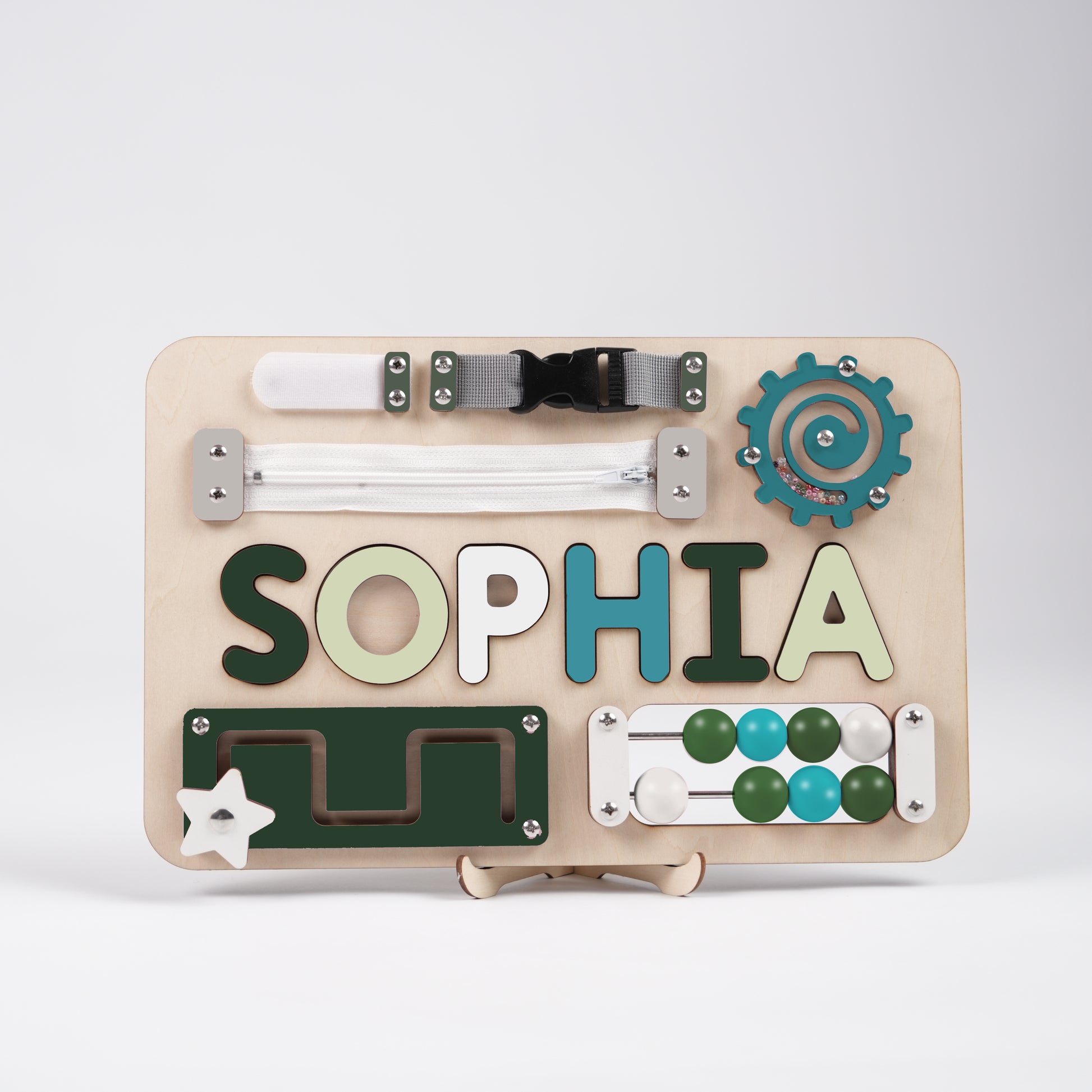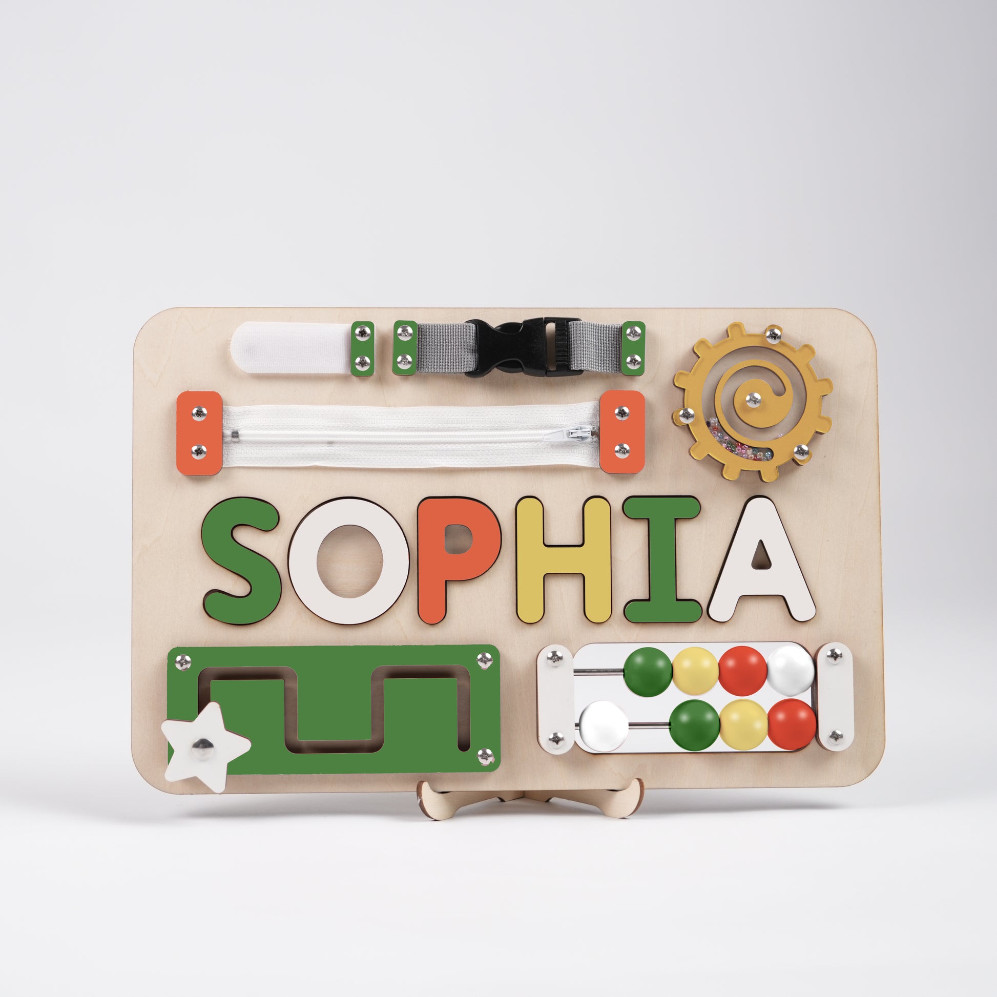 Personalized Busy Board with Letters – Customizable Montessori Sensory Toy