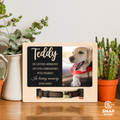 Honor the memory of your cherished pet with this beautifully crafted wooden pet memorial frame, designed to hold their collar and a personalized message. This thoughtful keepsake serves as a heartfelt way to celebrate their life and keep them close to your heart.