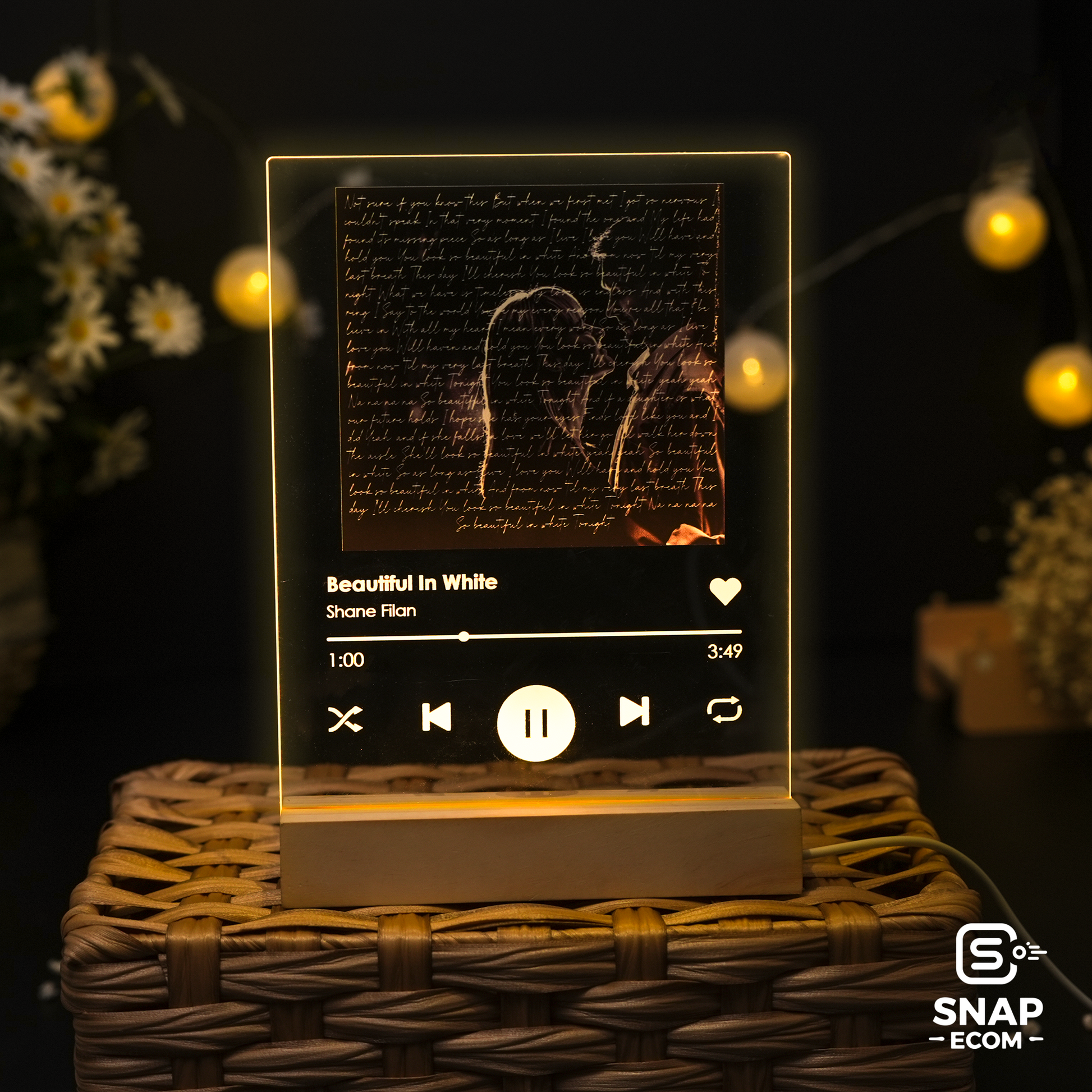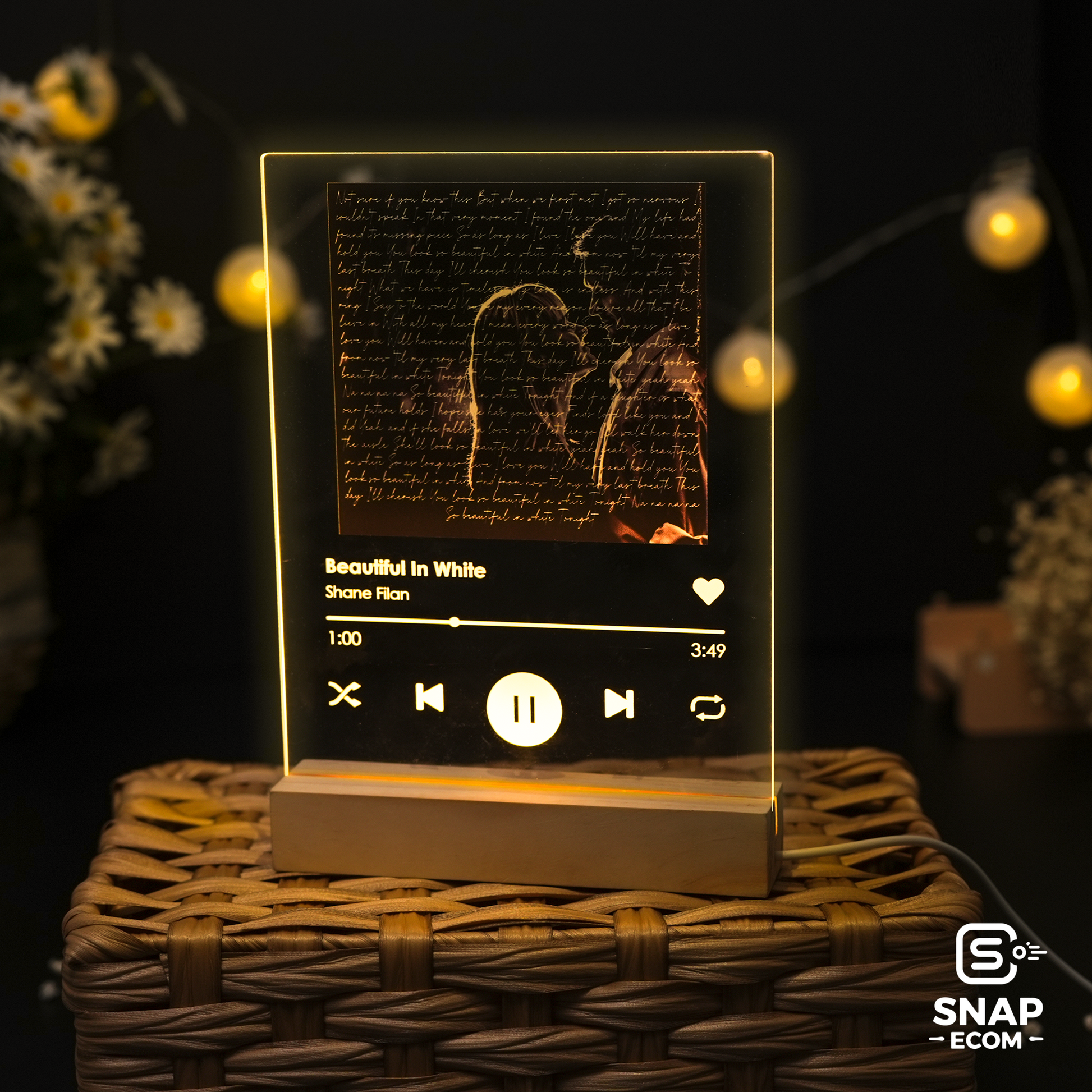 Celebrate cherished memories with our Personalized Photo Song Plaque Night Light, a stunning combination of light, music, and personalization. This custom acrylic plaque allows you to display your favorite photo alongside a song title, artist name, or even a scannable Spotify code. Designed with a soft LED glow, it’s perfect for creating a cozy ambiance while showcasing the soundtrack to your most treasured moments.
