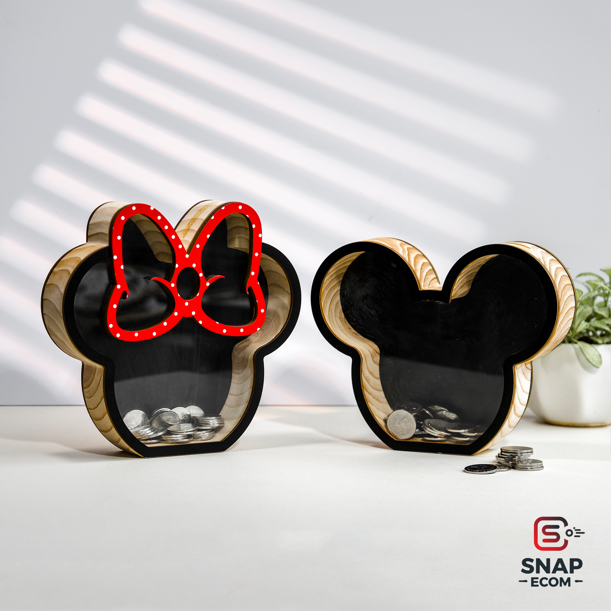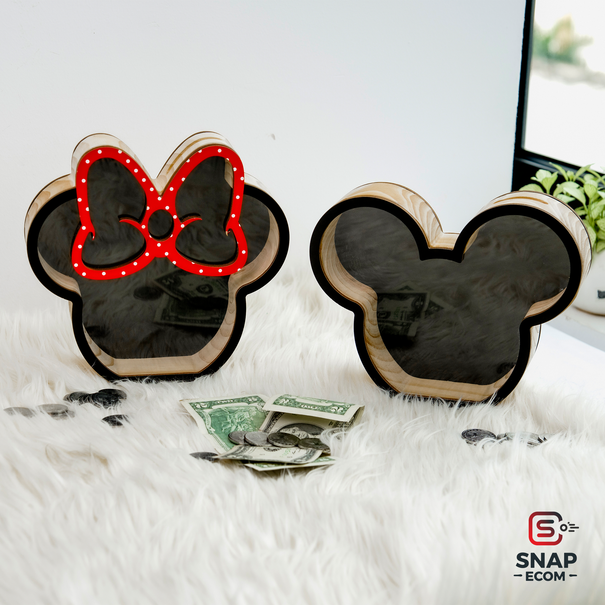 Personalized Mickey And Minnie Piggy Bank, See-Through Design, My First Piggy Bank For Boys & Girls