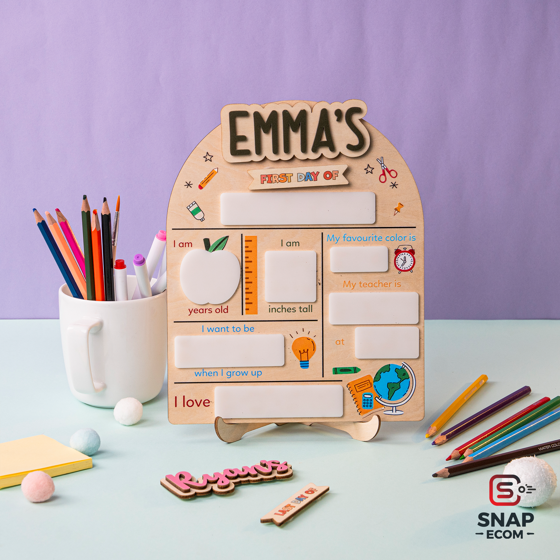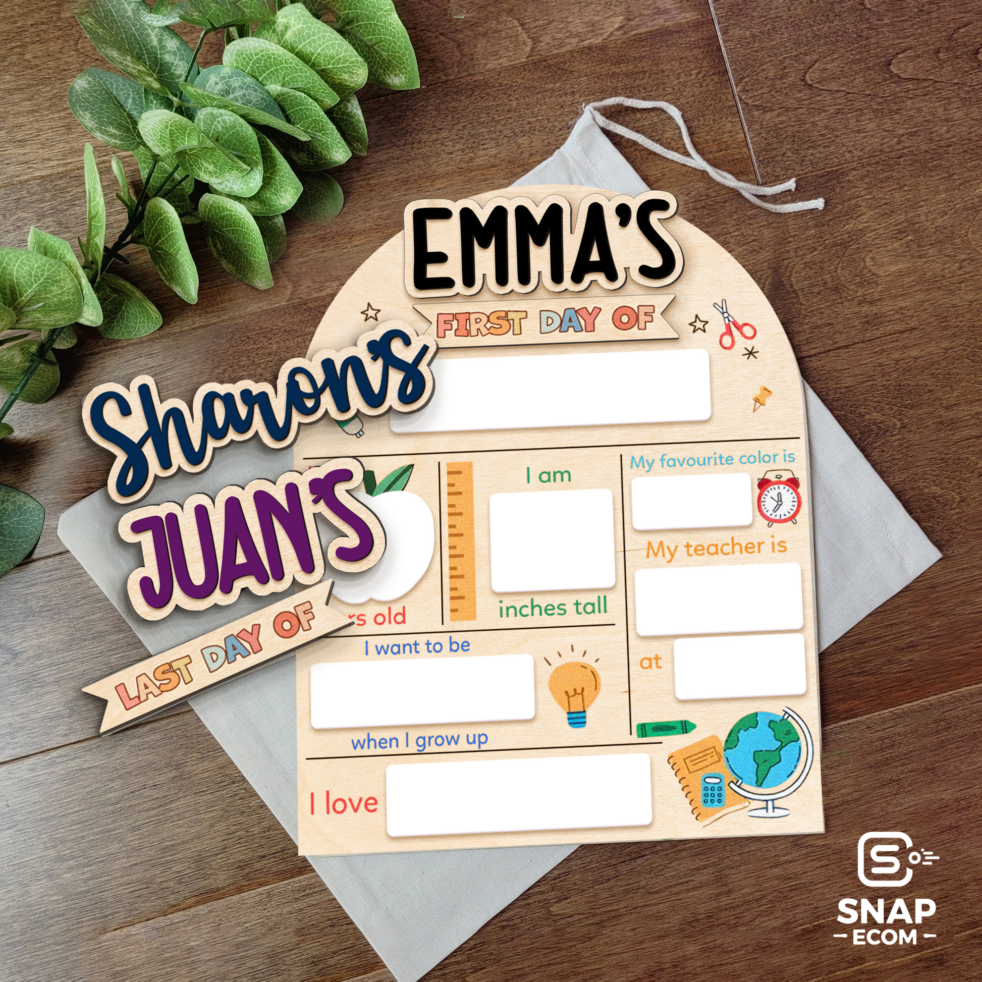 Capture every special moment with our versatile First Day of School Sign, perfect for back-to-school photos, kindergarten memories, and marking both the first and last days of school. Easily customize with interchangeable names and switch between "first day of" and "last day of" for maximum usability.
