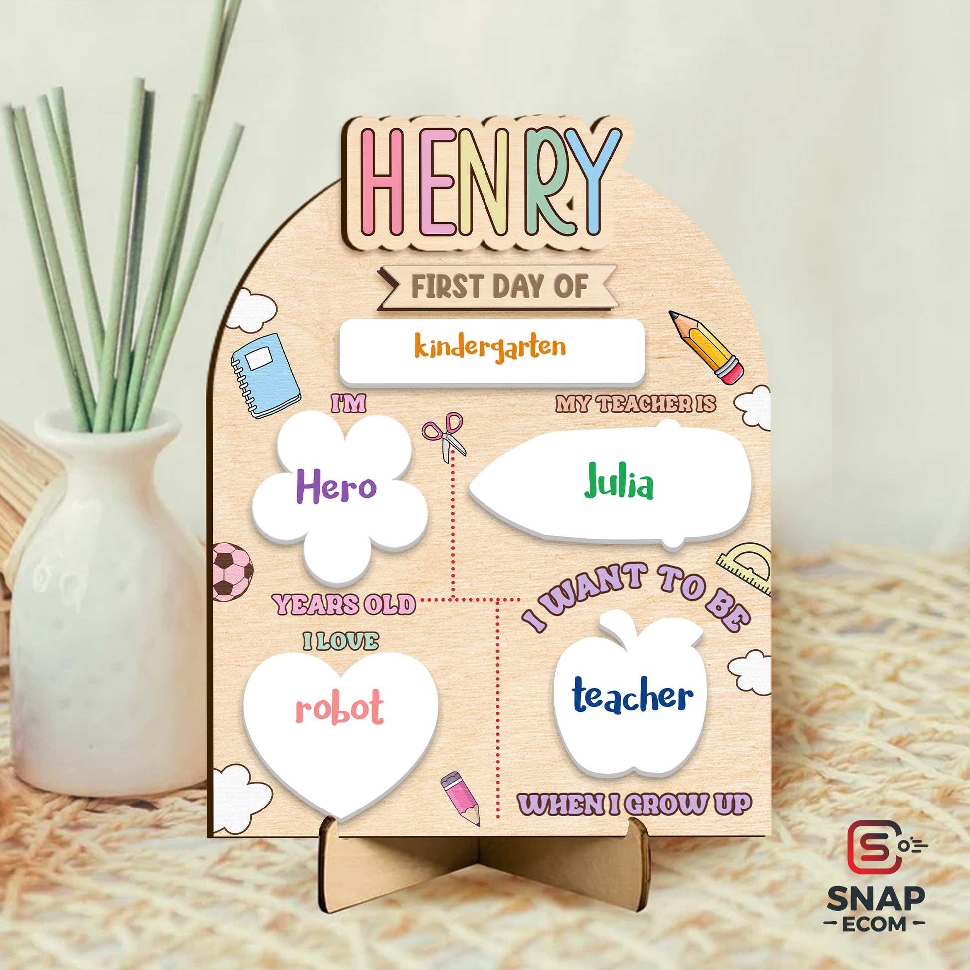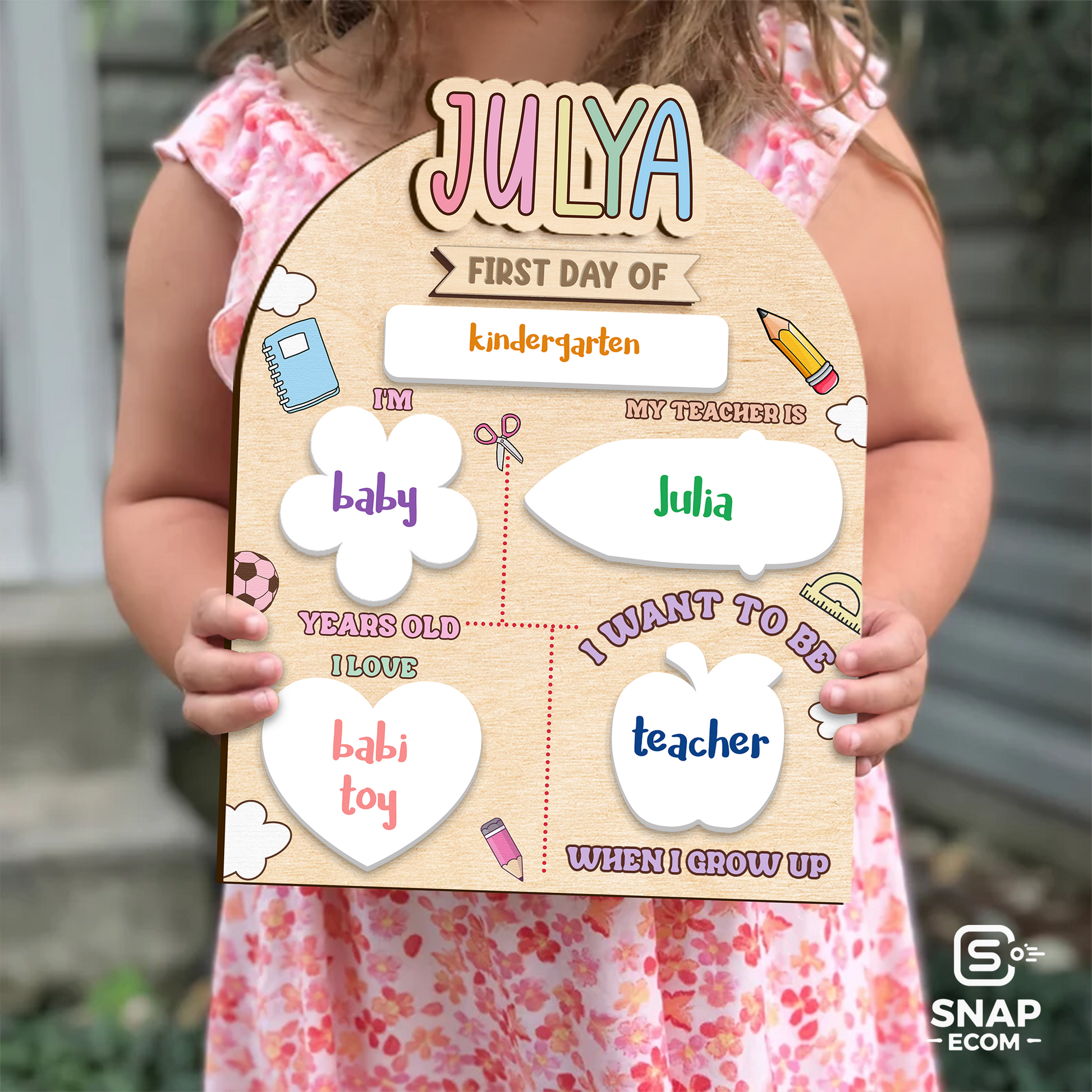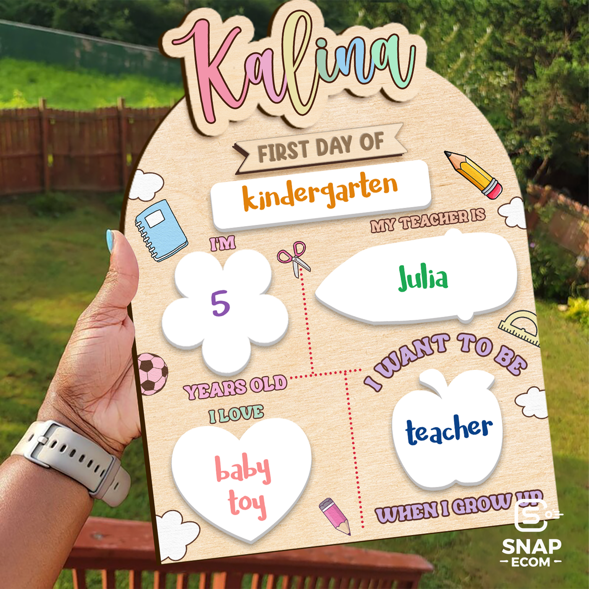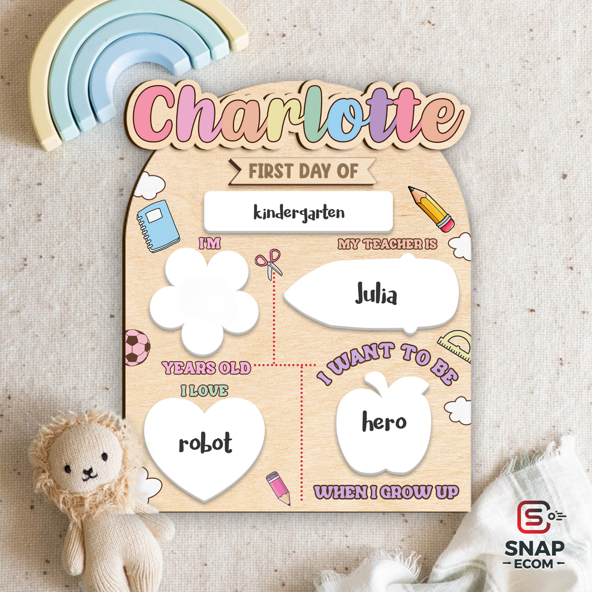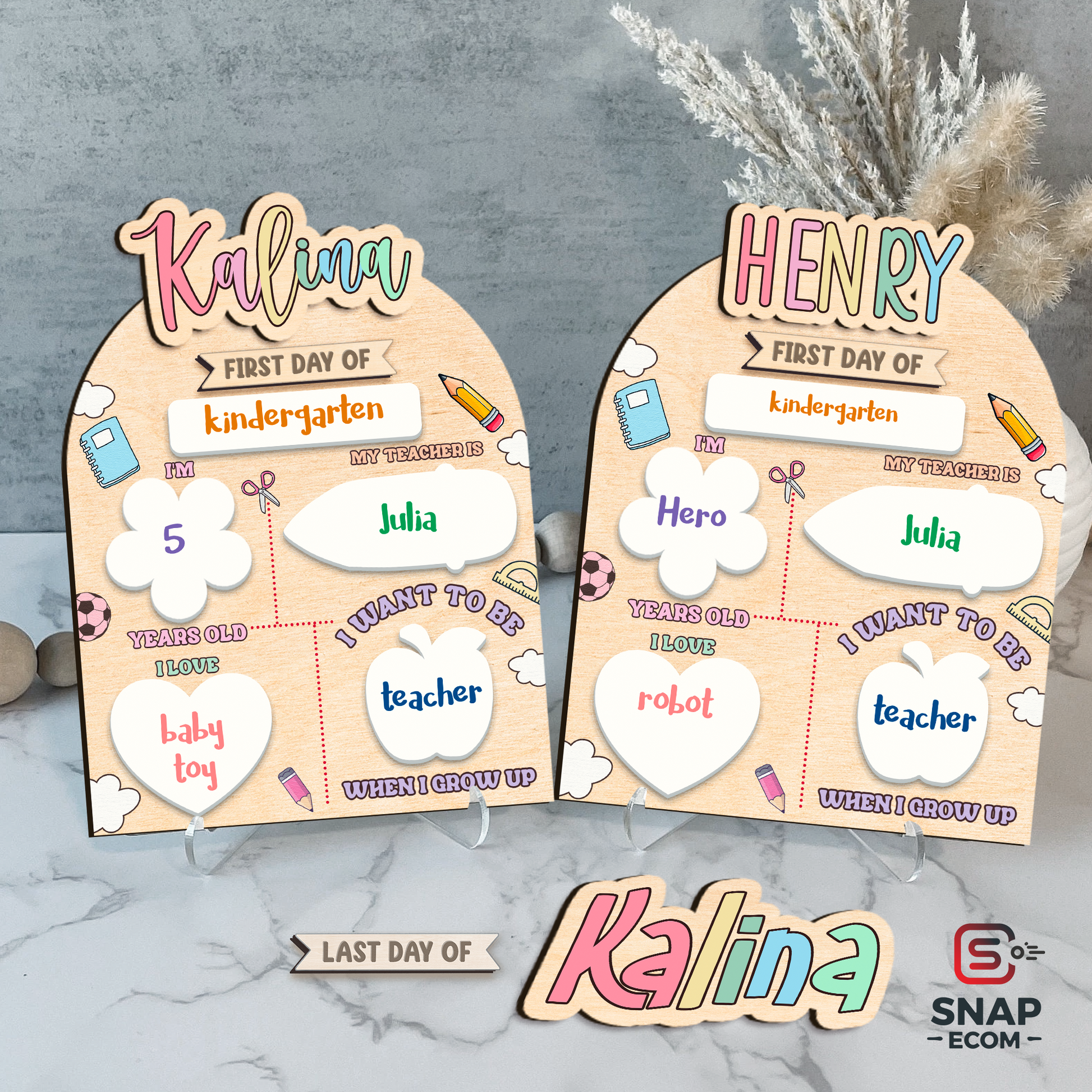 Capture every special moment with our versatile First Day of School Sign, perfect for back-to-school photos, kindergarten memories, and marking both the first and last days of school. Easily customize with interchangeable names and switch between "first day of" and "last day of" for maximum usability.