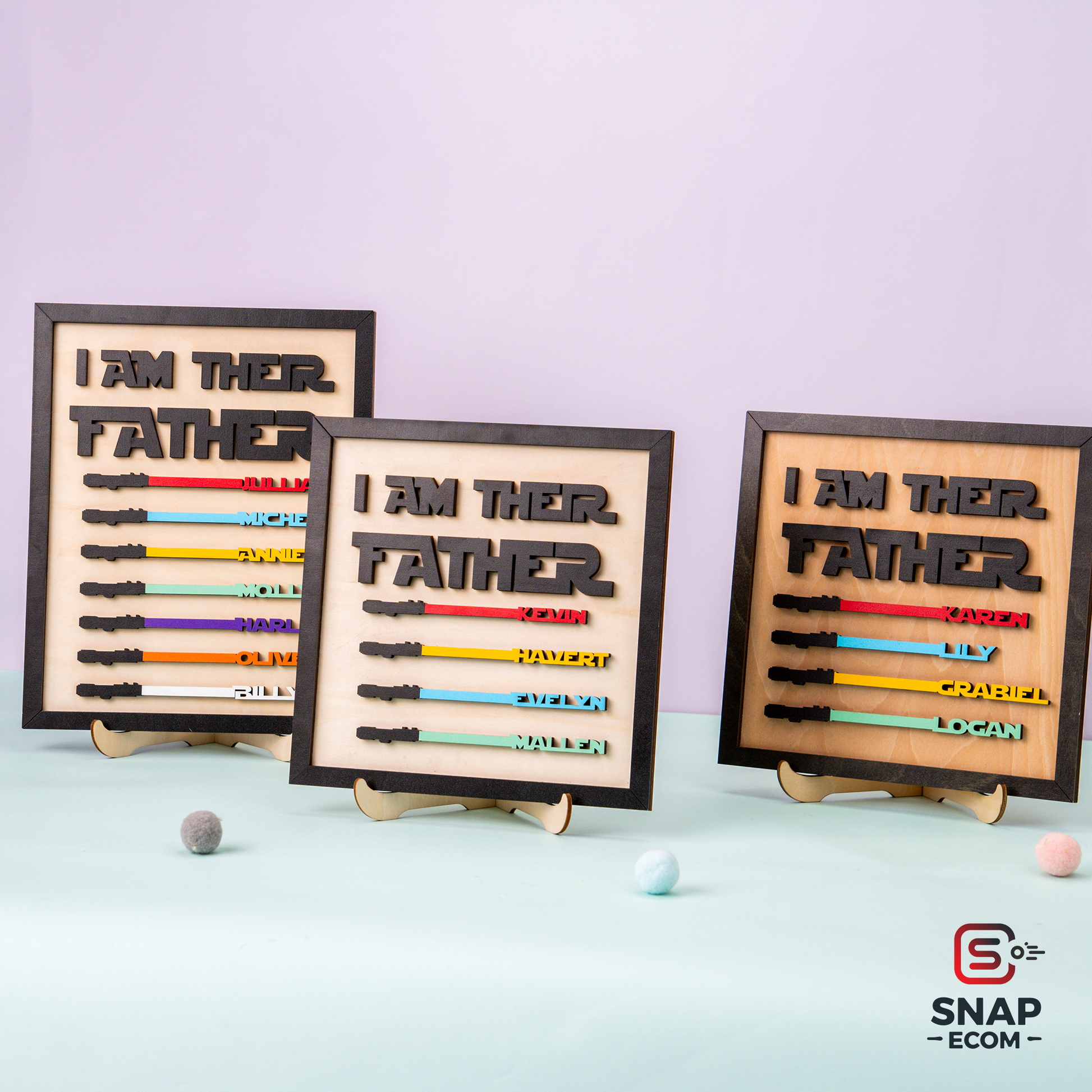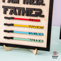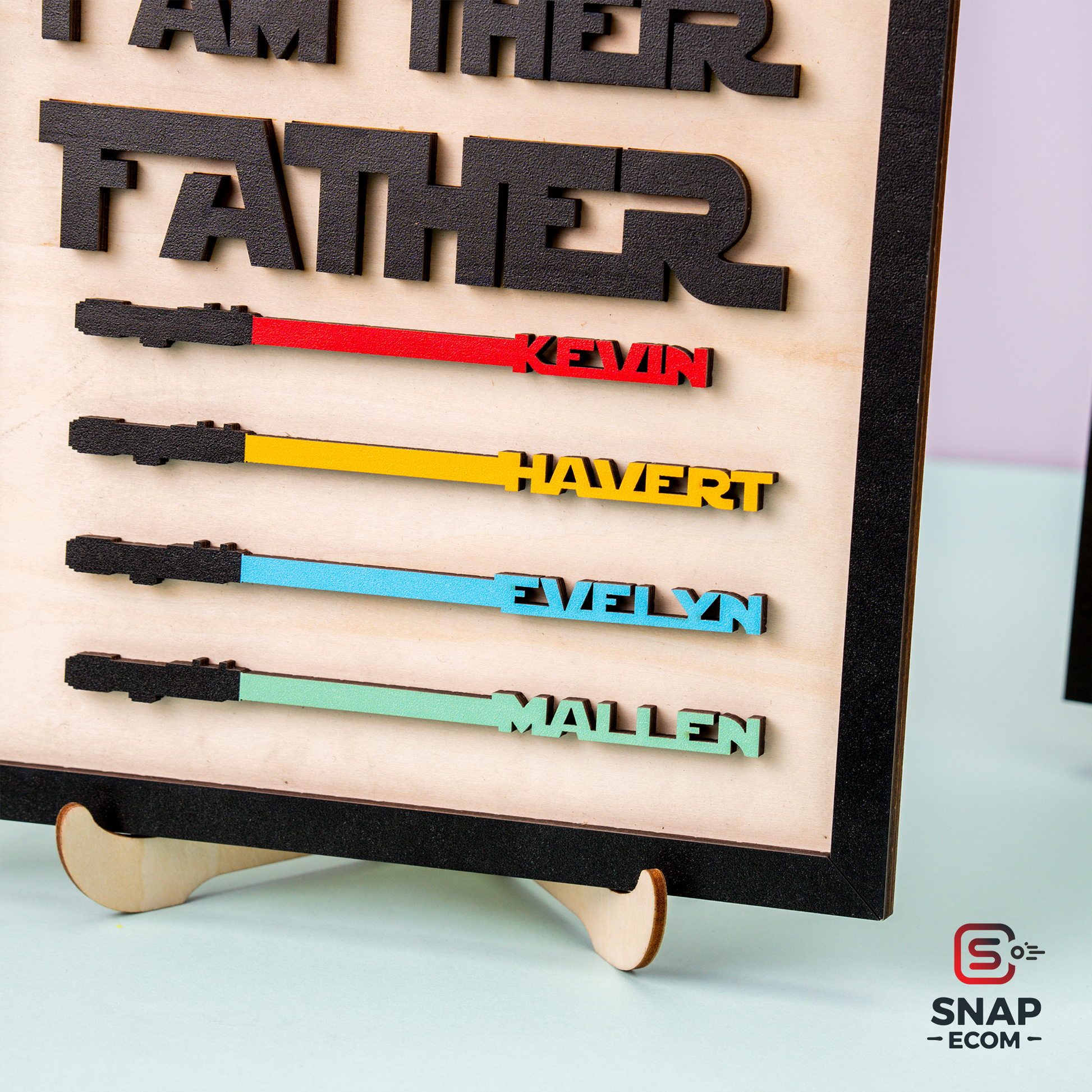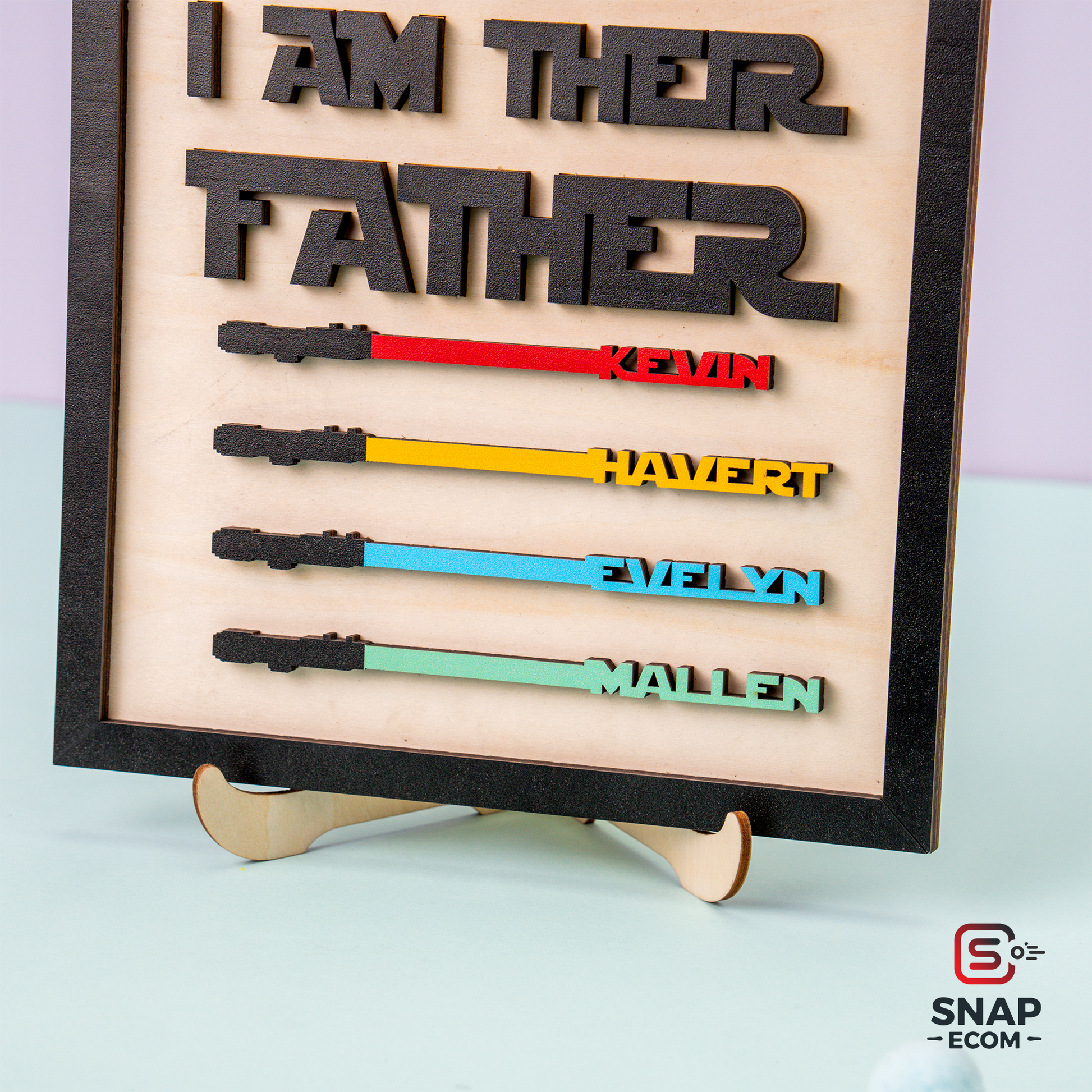 The perfect gift for Star Wars-loving dads, grandpas, or mentors, this custom wooden sign brings the bond of family to life in a galactic way! Featuring up to 7 laser-cut names seamlessly connected to lightsabers, along with a raised 3D quote, this is the ultimate Father’s Day, birthday, or Christmas keepsake for any Star Wars fan.