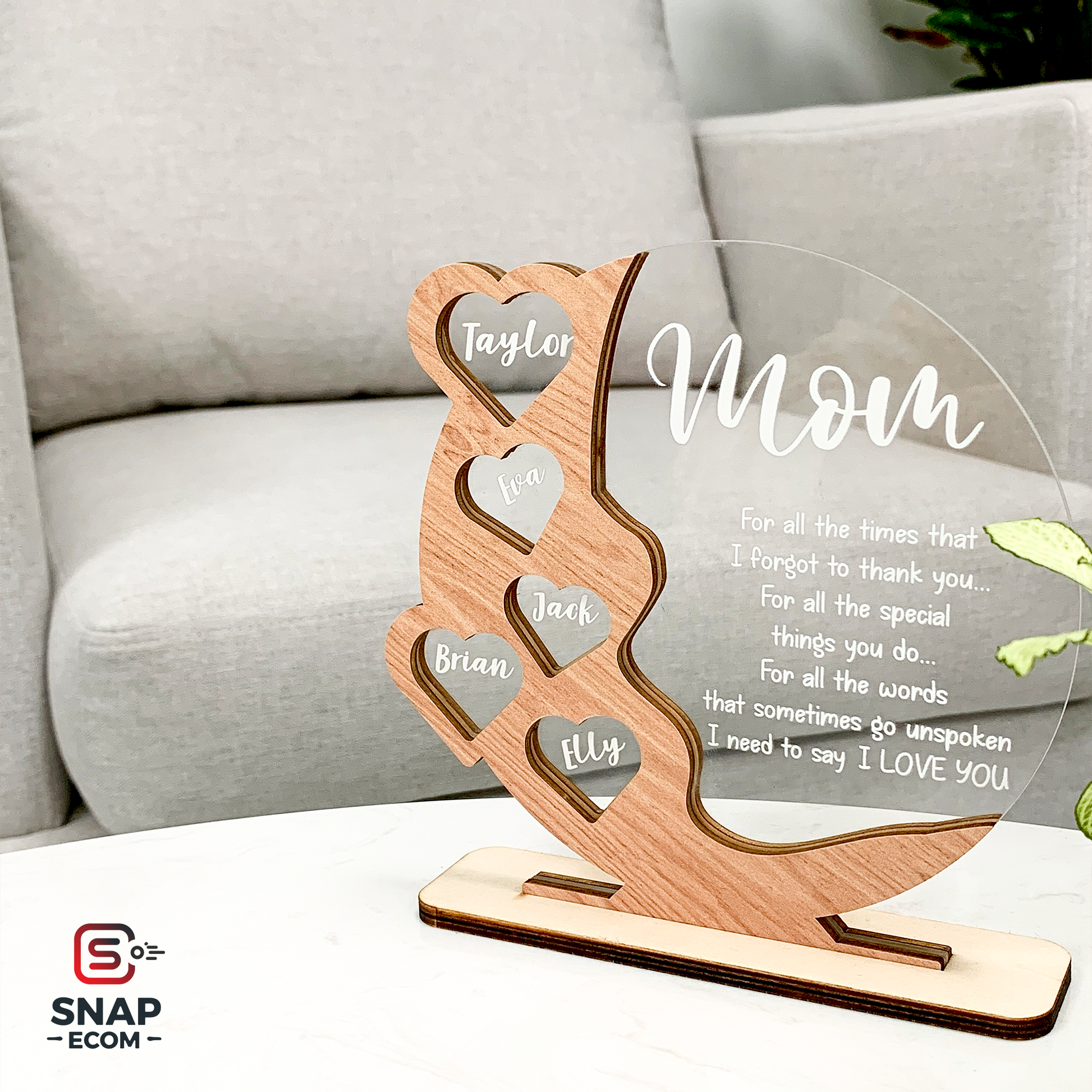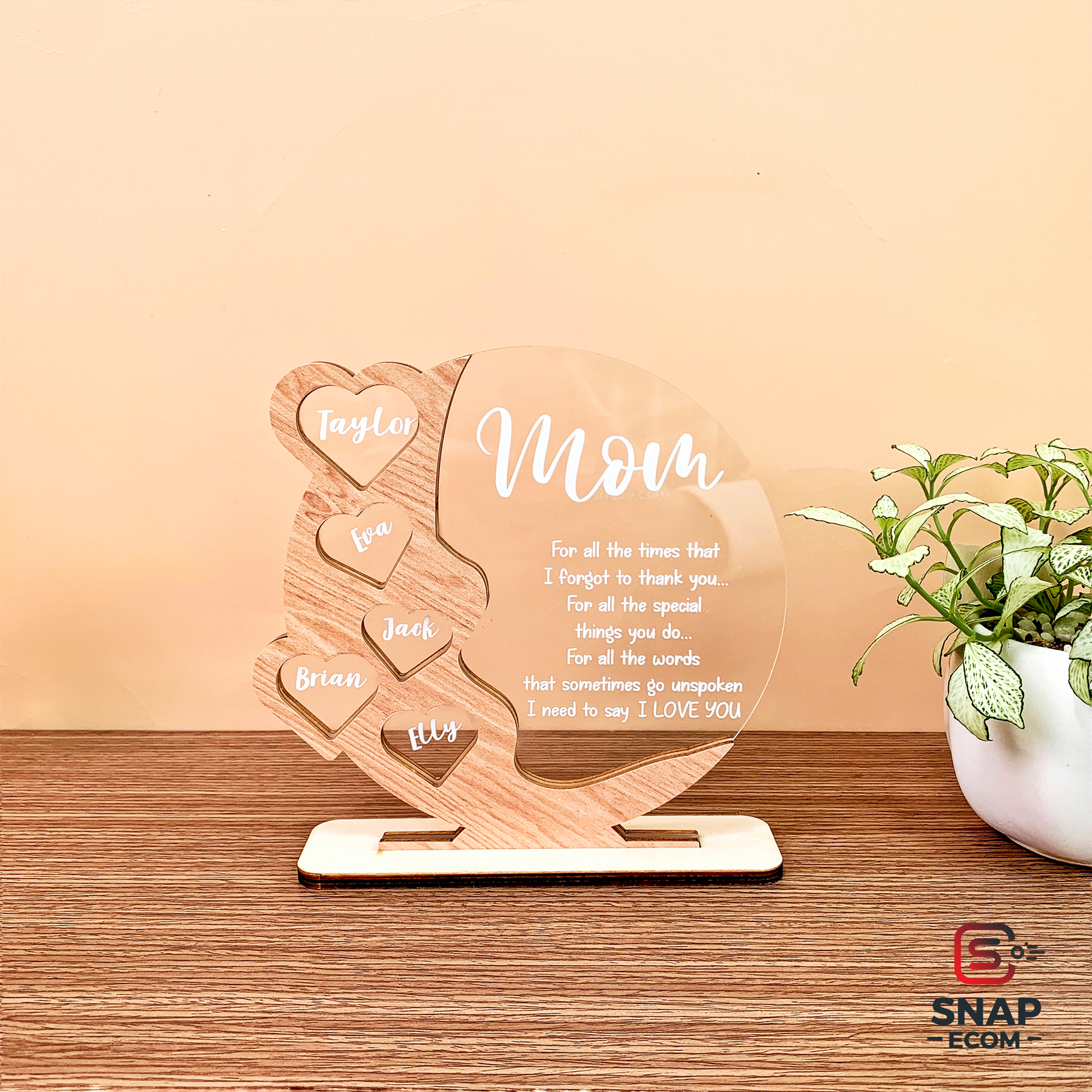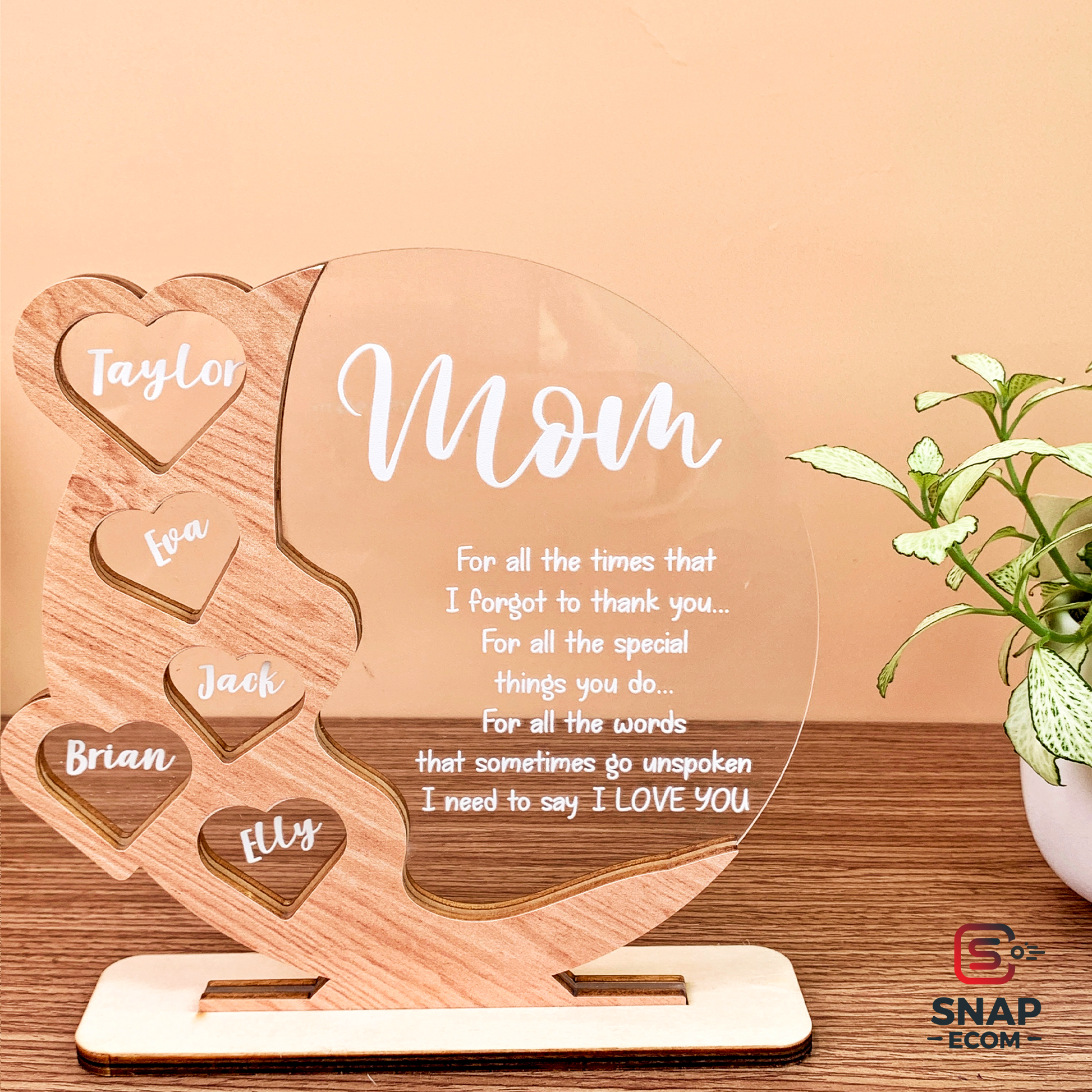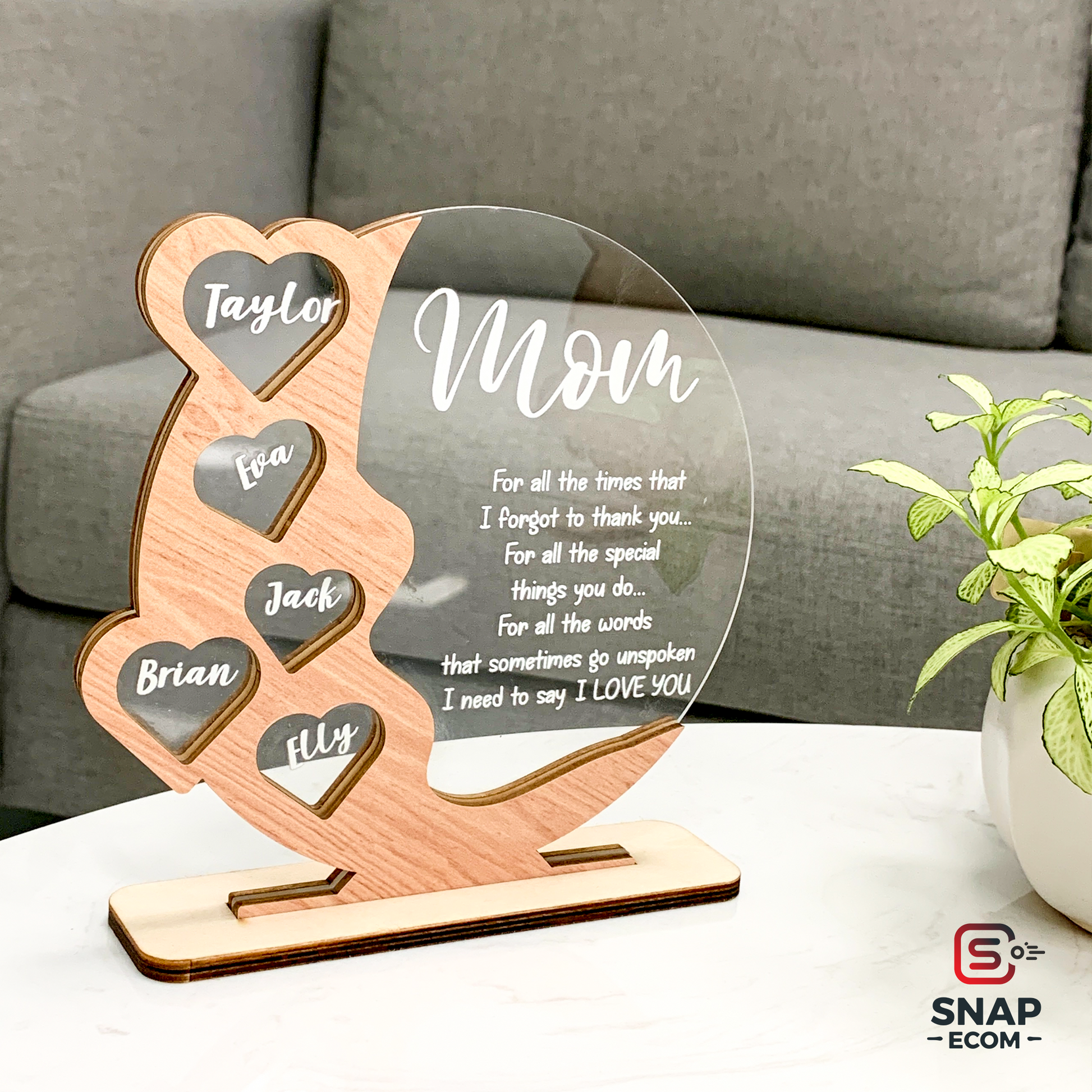 Personalized Wooden Acrylic Mom Sign With Names On Heart